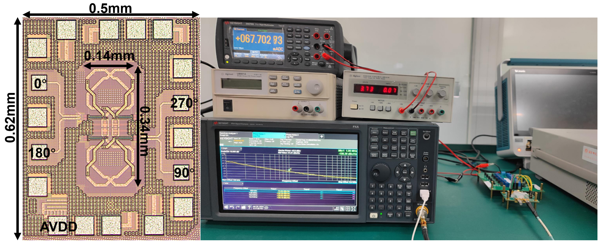 论文三所设计的毫米波正交压控振荡器芯片与测试环境
