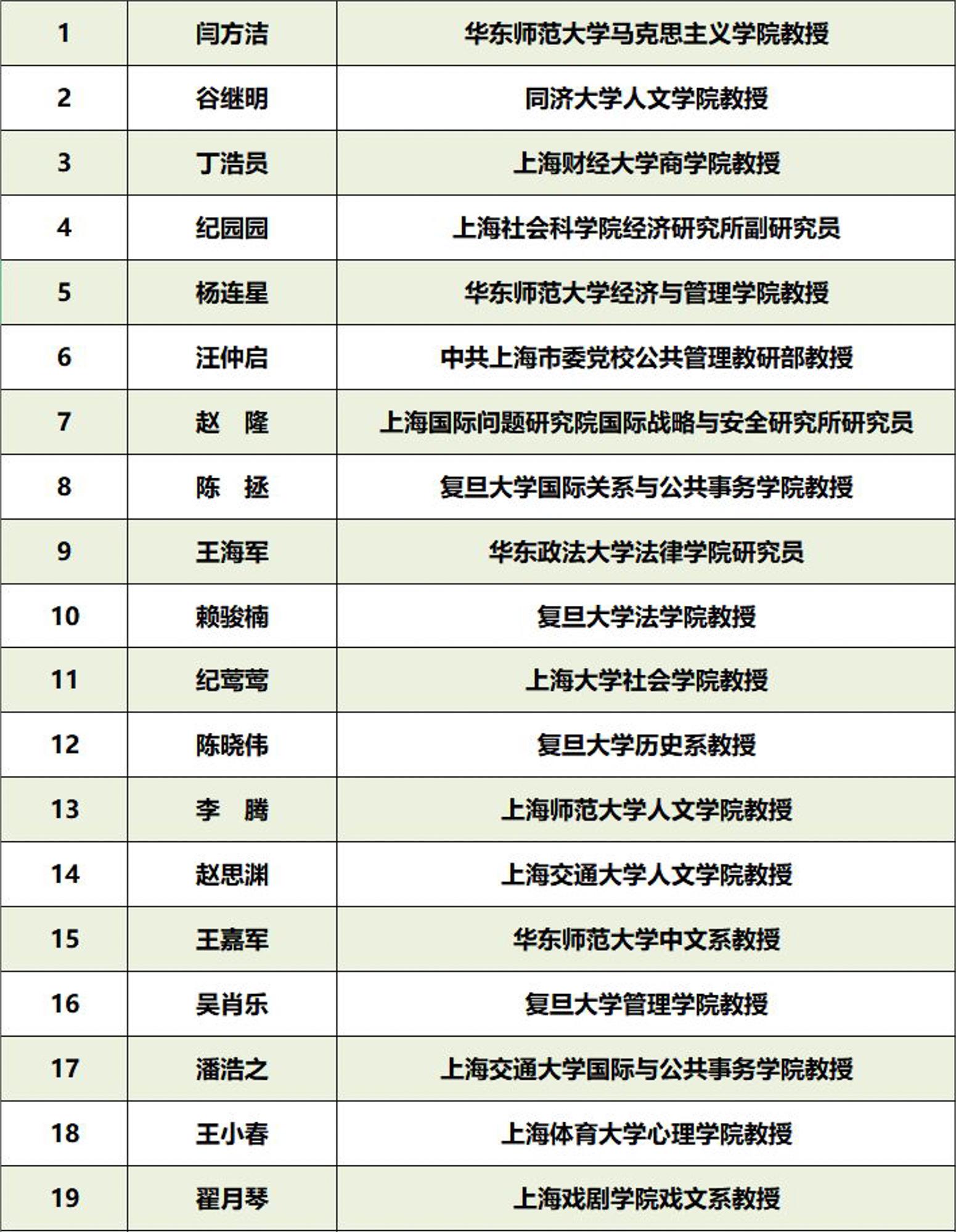 第十二届“上海社科新人”获奖名单
