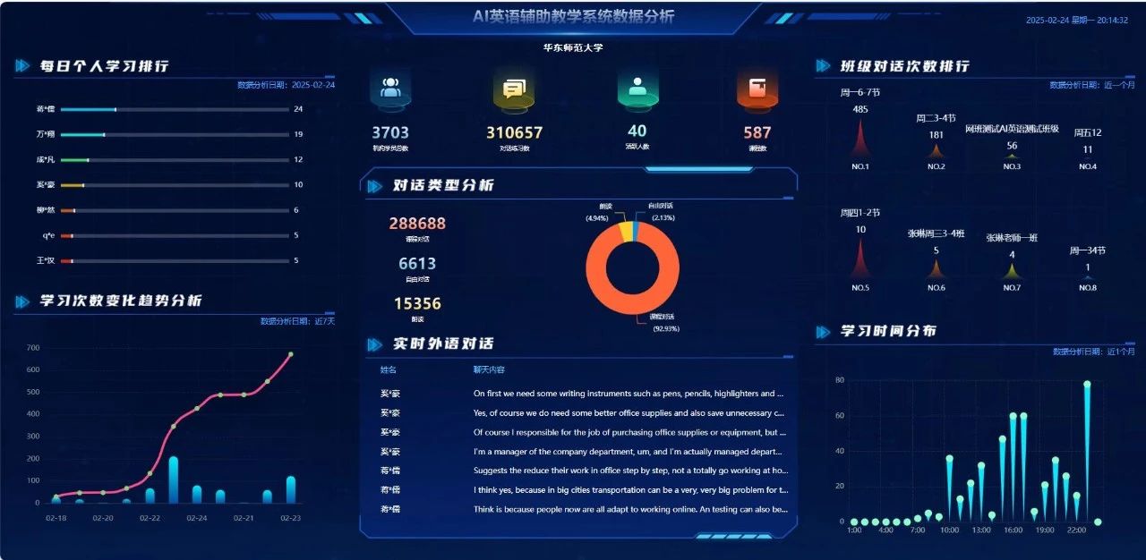 目前,由《实用商务英语》课程团队牵头开发的“AI英语GO”已辐射近3700余名师大学子,累计链接课程587门次,生成情景对话31余万条。吸引了全国25所高校,19000余名学生使用。