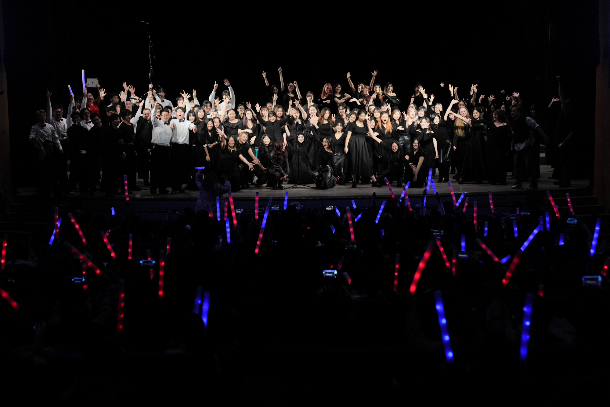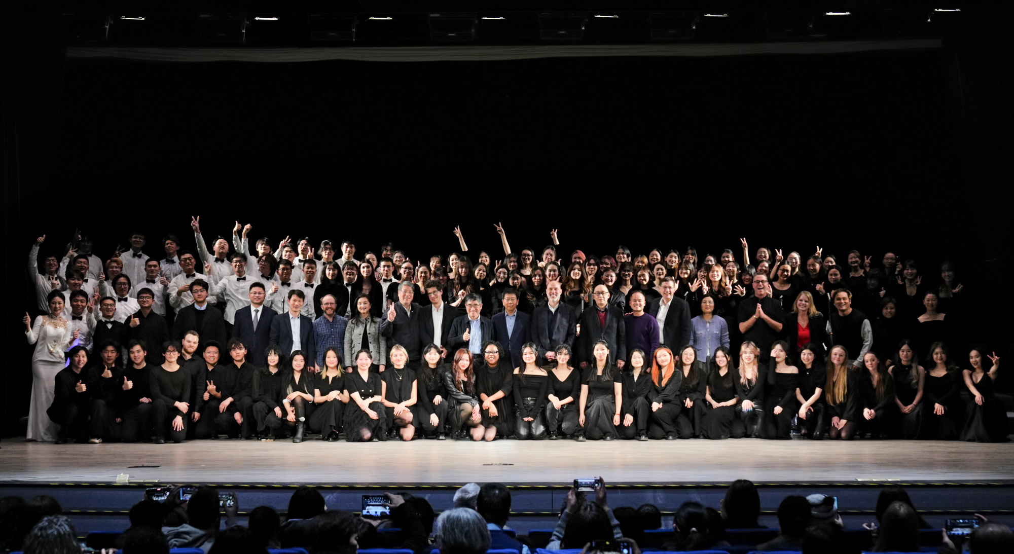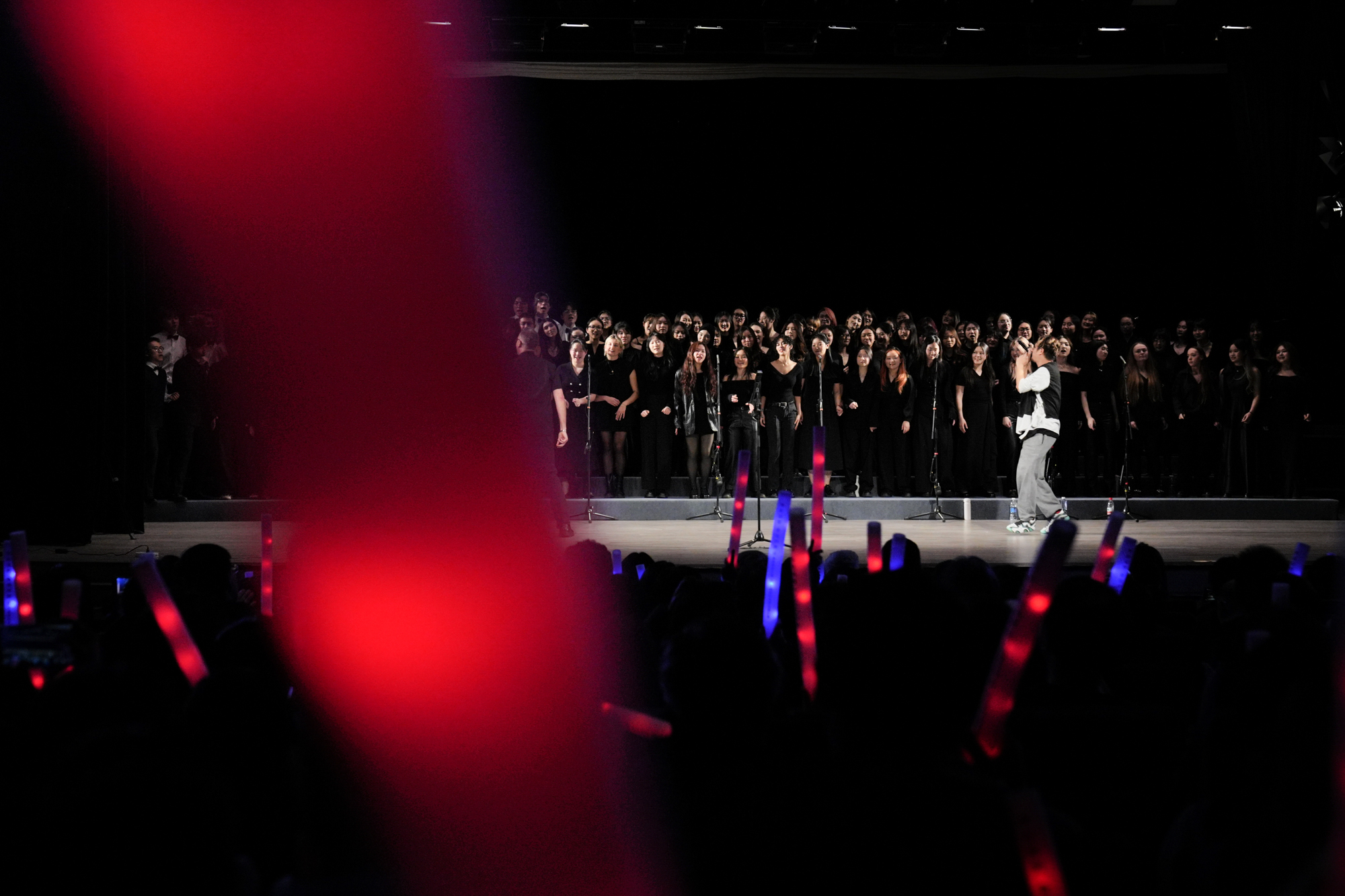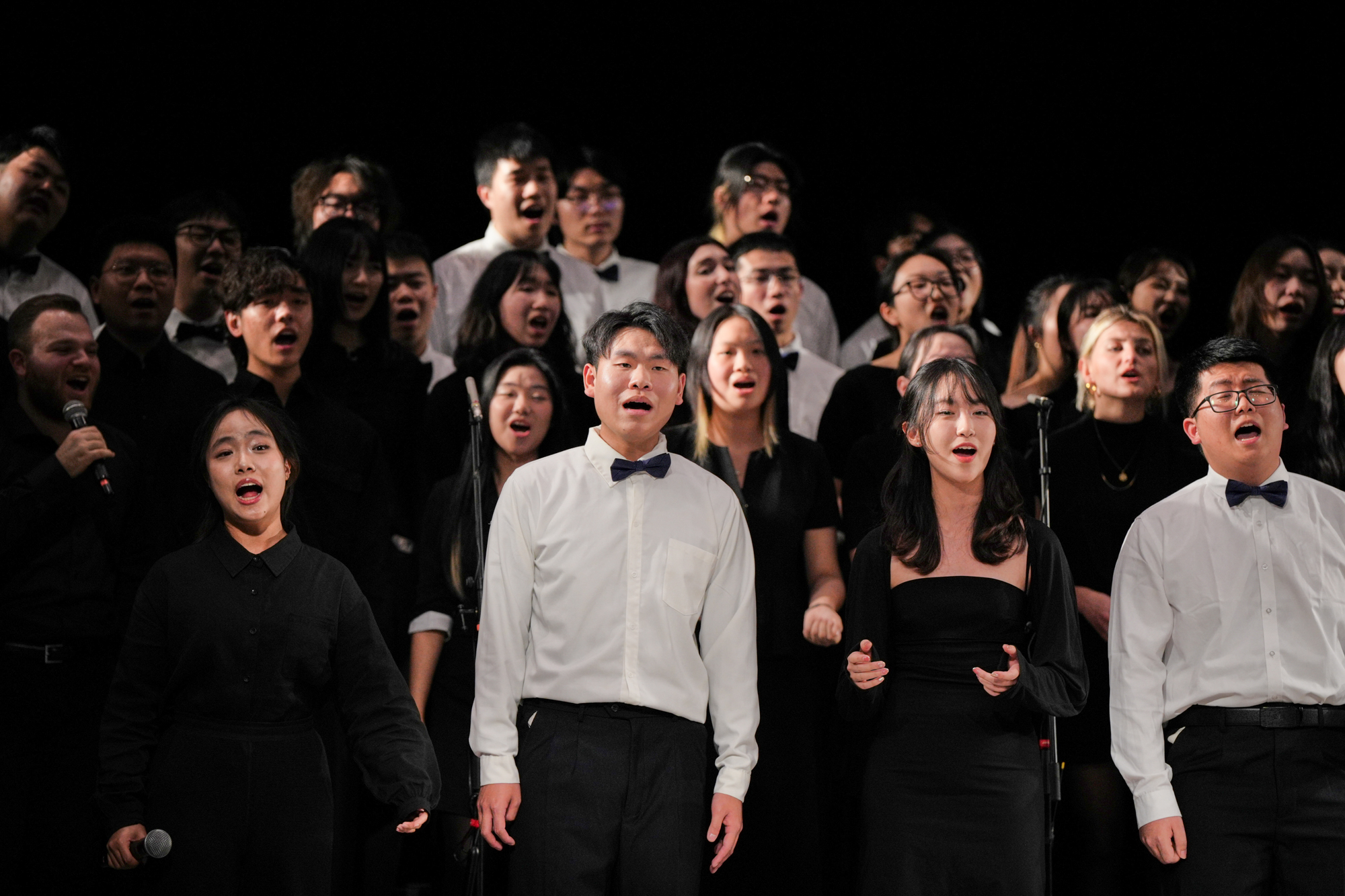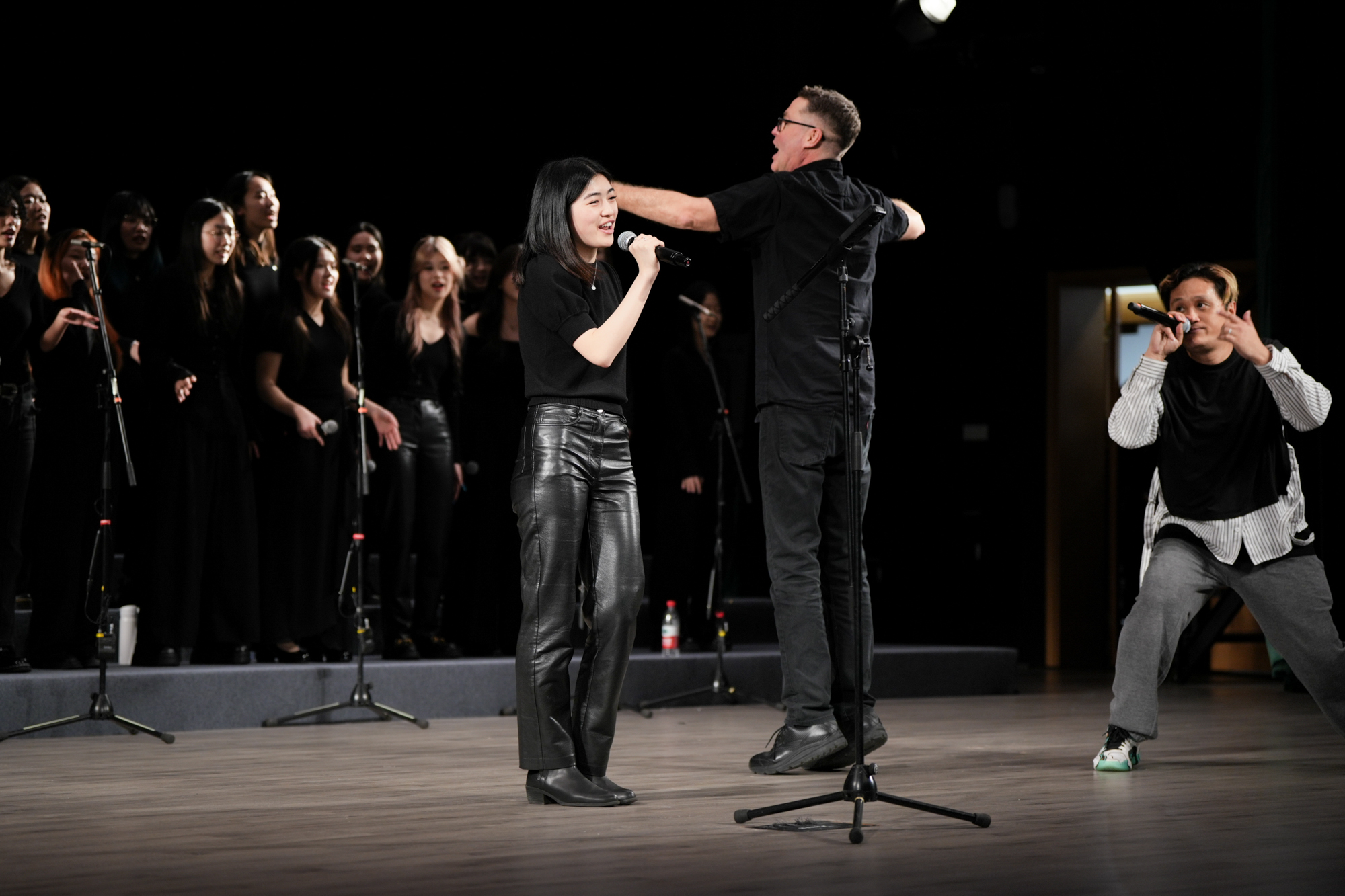 本次演出不仅是学生才华的展示,更得益于国际艺术家的深度参与。“当代阿卡贝拉之父”Deke Sharon现场指挥,其标志性的编曲风格为作品注入灵魂;新加坡声乐乐队MICappella创始人和领队Peter Huang的人声打击伴奏,令观众直呼“仿佛自带一支乐队”。