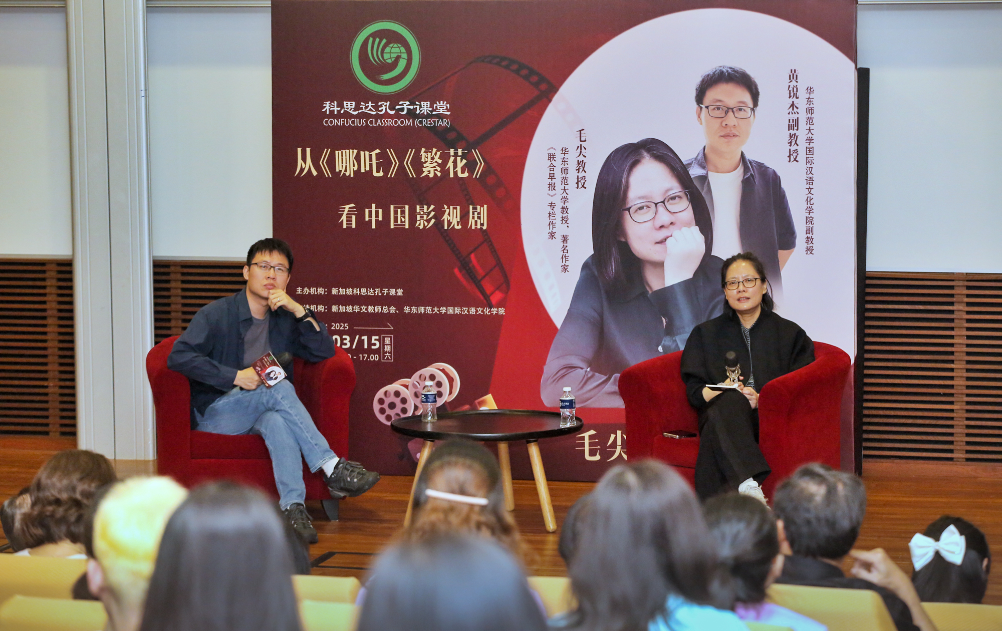 3月15日,一场聚焦华语影视文化的精彩对谈活动——“从《哪吒》《繁花》看中国影视剧:毛尖×黄锐杰对谈”在新加坡举办。活动由新加坡科思达孔子课堂主办,新加坡华文教师总会与3245澳门新莆京国际汉语文化学院联合承办,吸引了当地华文教师、大学生、影视爱好者及文化学者纷至沓来,现场座无虚席,气氛热烈非凡。