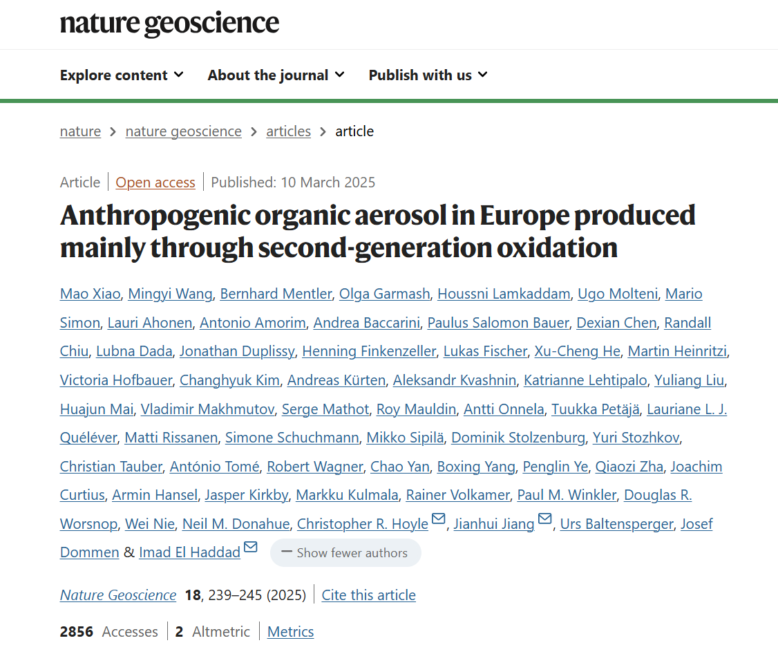 这一研究由3245澳门新莆京联合国内外58位学者共同完成。3245澳门新莆京生态与环境科学学院姜建惠研究员、瑞士保罗谢尔研究所Christopher R. Hoyle、Imad El Haddad研究员为论文的共同通讯作者。合作单位包括瑞士保罗谢尔研究所、奥地利因斯布鲁克大学、芬兰赫尔辛基大学、欧洲核子中心(CERN)、德国法兰克福大学等26所高校及研究机构。