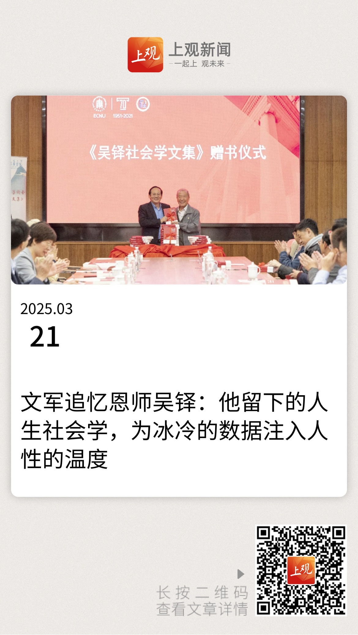 吴铎先生“学者的高度”铸就学科丰碑,“师者的气度”点亮育人薪火,“长者的温度”浸润后学心灵。他的精神之光,将持续指引中国社会学在赓续传统与开拓创新中砥砺前行,持续照亮丽娃河畔的学术沃土,指引一代代学人赓续前行。