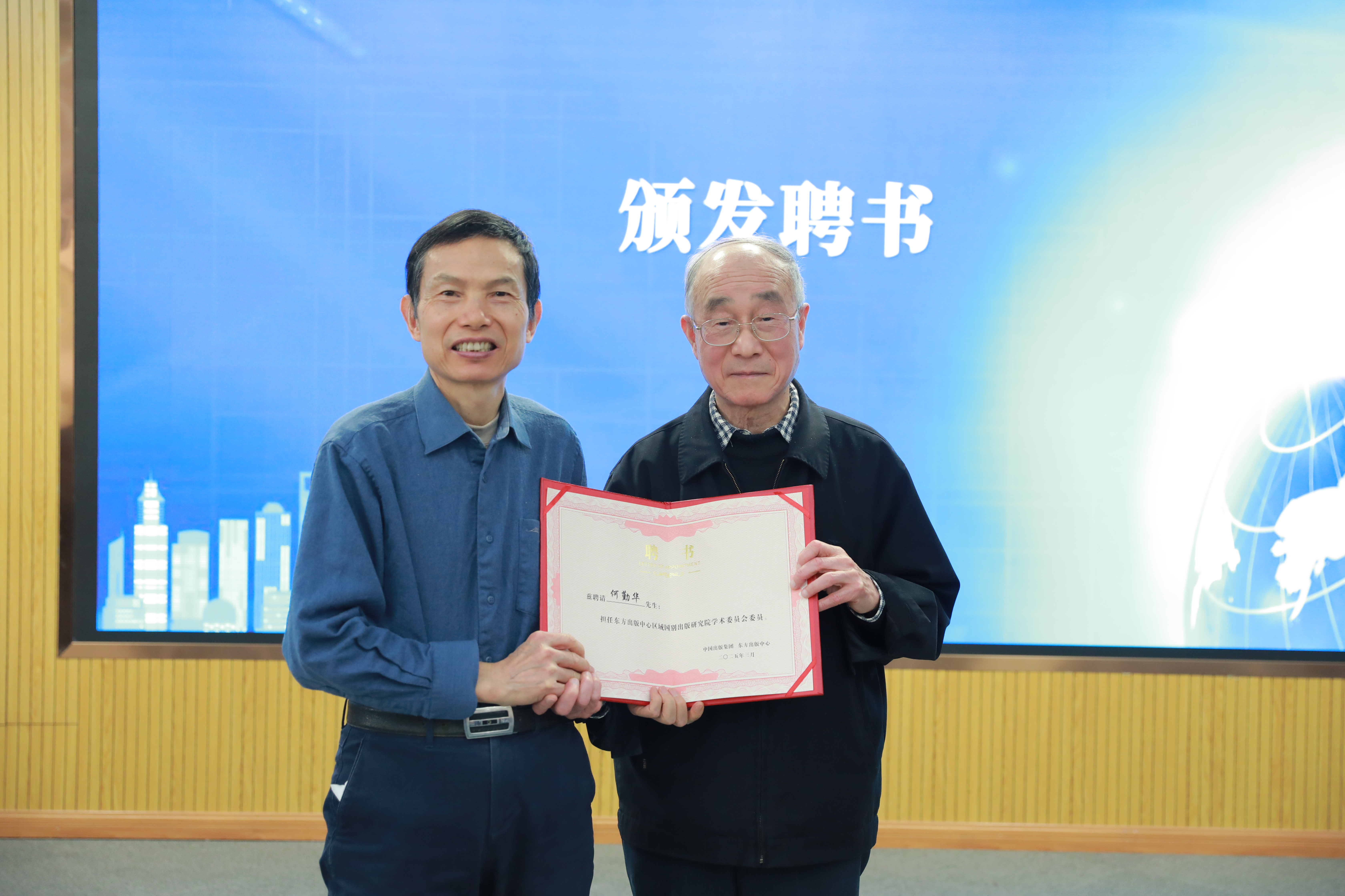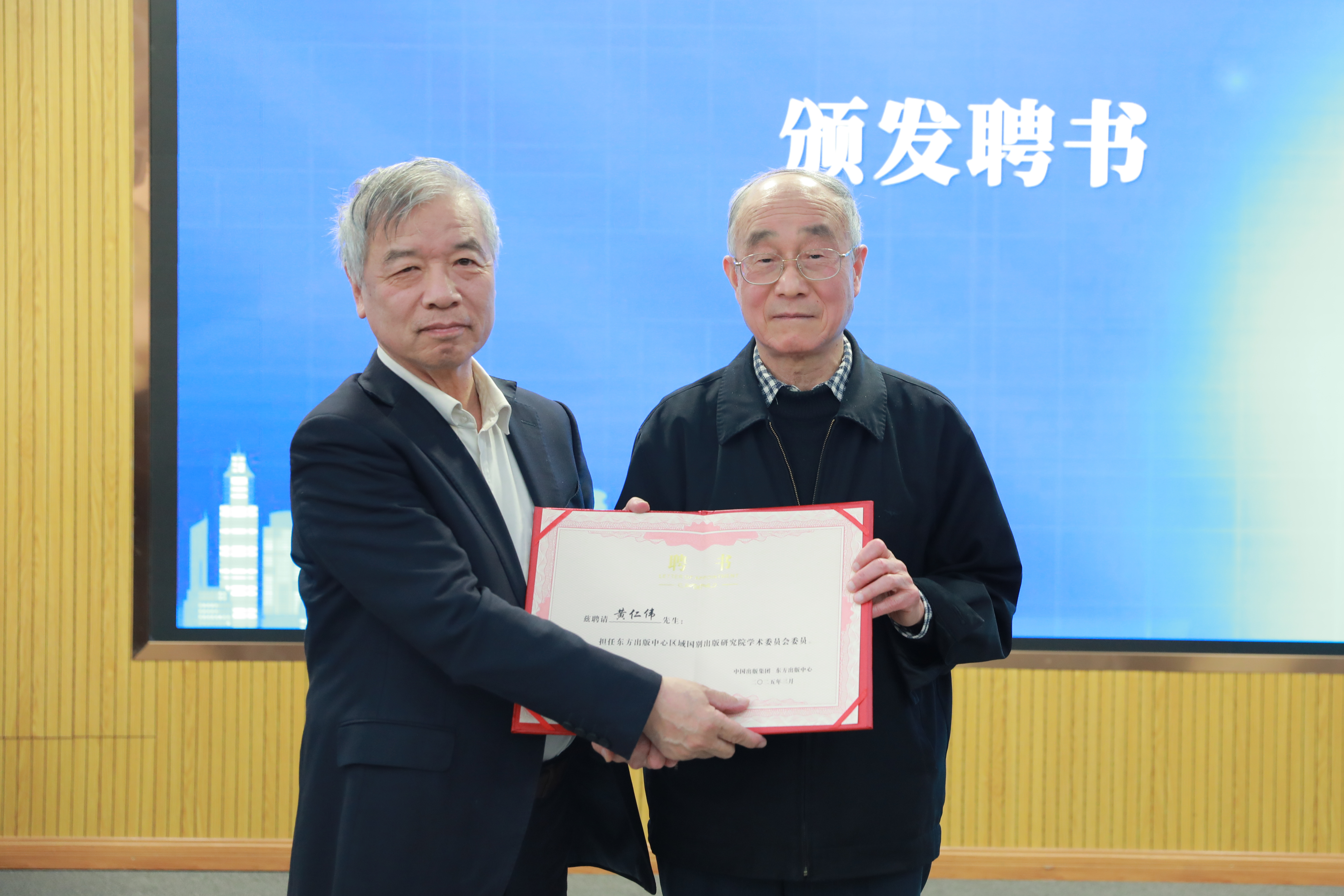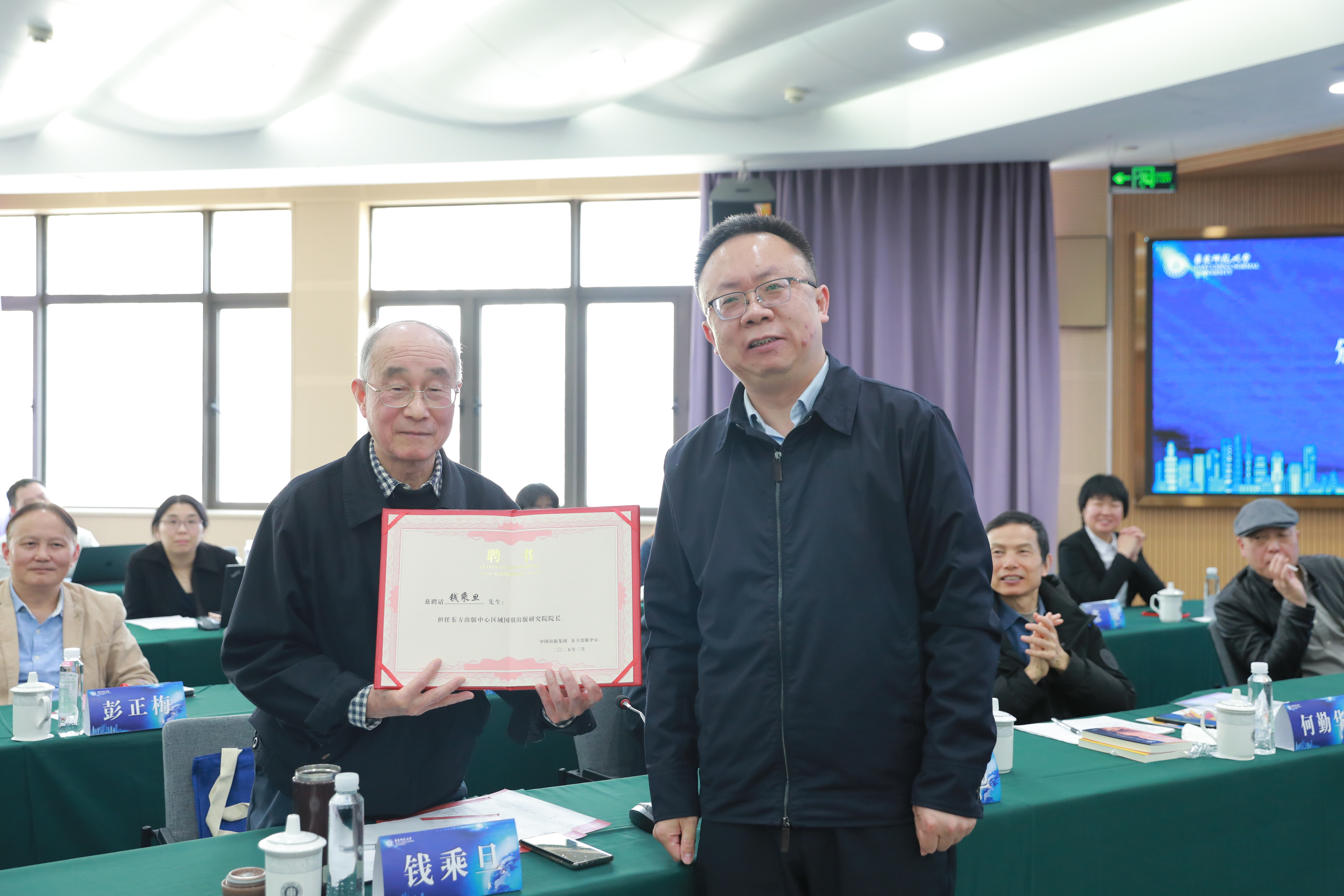 陈义望向钱乘旦颁发东方出版中心区域国别出版研究院院长聘书