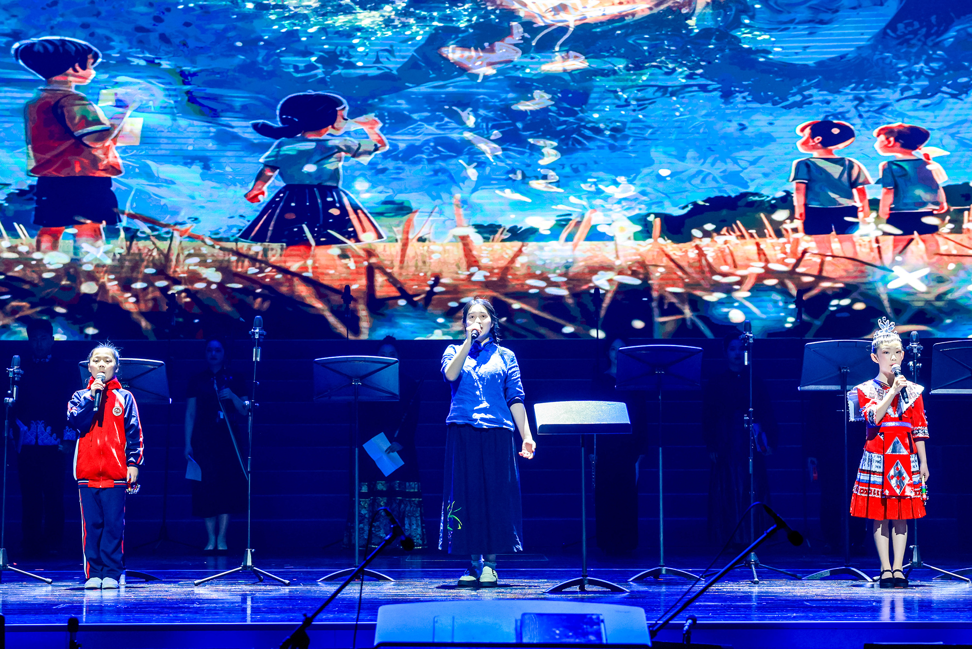 湖南省醴陵市佛年学校、湖南省江永县第一中学、贵州省遵义市新蒲新区白鹭湖小学、云南省寻甸县第二中学、云南省寻甸县仁德一小、河南省罗山县莽张镇中心学校、宁夏海原县第五中学等中小学合唱团的精彩演出,生动展示了“教育筑梦”行动的成效。