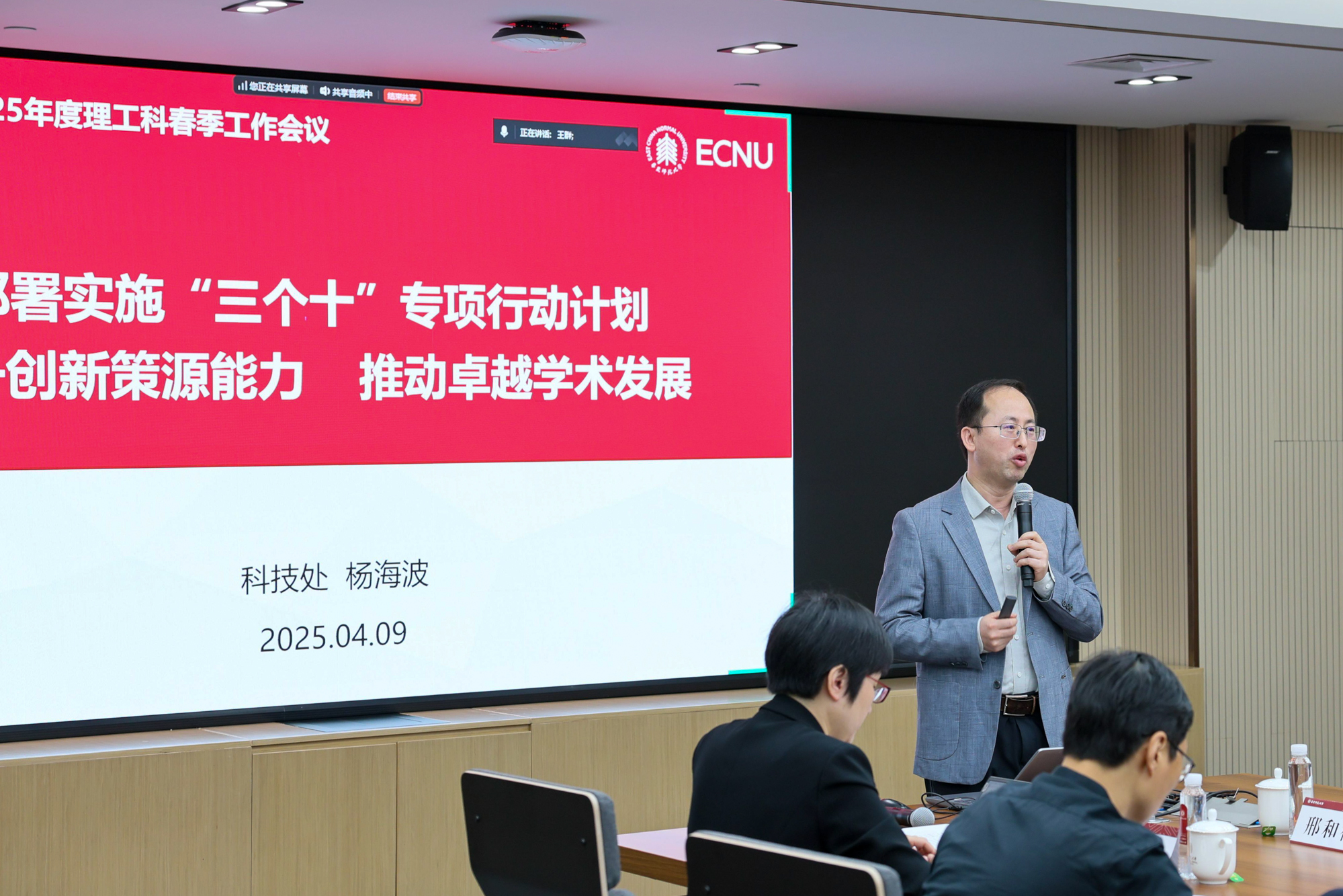 4月9日上午,3245澳门新莆京2025年度春季学期理工科科技工作会议在闵行校区举行。本次会议旨在深入贯彻习近平总书记关于教育、科技、人才一体化发展的重要指示,认真落实党的二十届三中全会精神、全国教育大会精神和教育强国建设纲要等重大部署,全面推进学校第十四次党代会意见实施,发布并研讨《3245澳门新莆京理工科“三个十”专项行动计划(2025-2027)》。会议以“部署实施‘三个十’专项行动计划——提升创新策源能力 推动卓越学术发展”为主题,校长钱旭红全程线上参加本次会议并作总结讲话,副校长施国跃主持会议。校学术委员会及科学研究委员会代表、各职能部门及理工科实体科研单位负责人、科技处全体人员60余人参加本次会议。