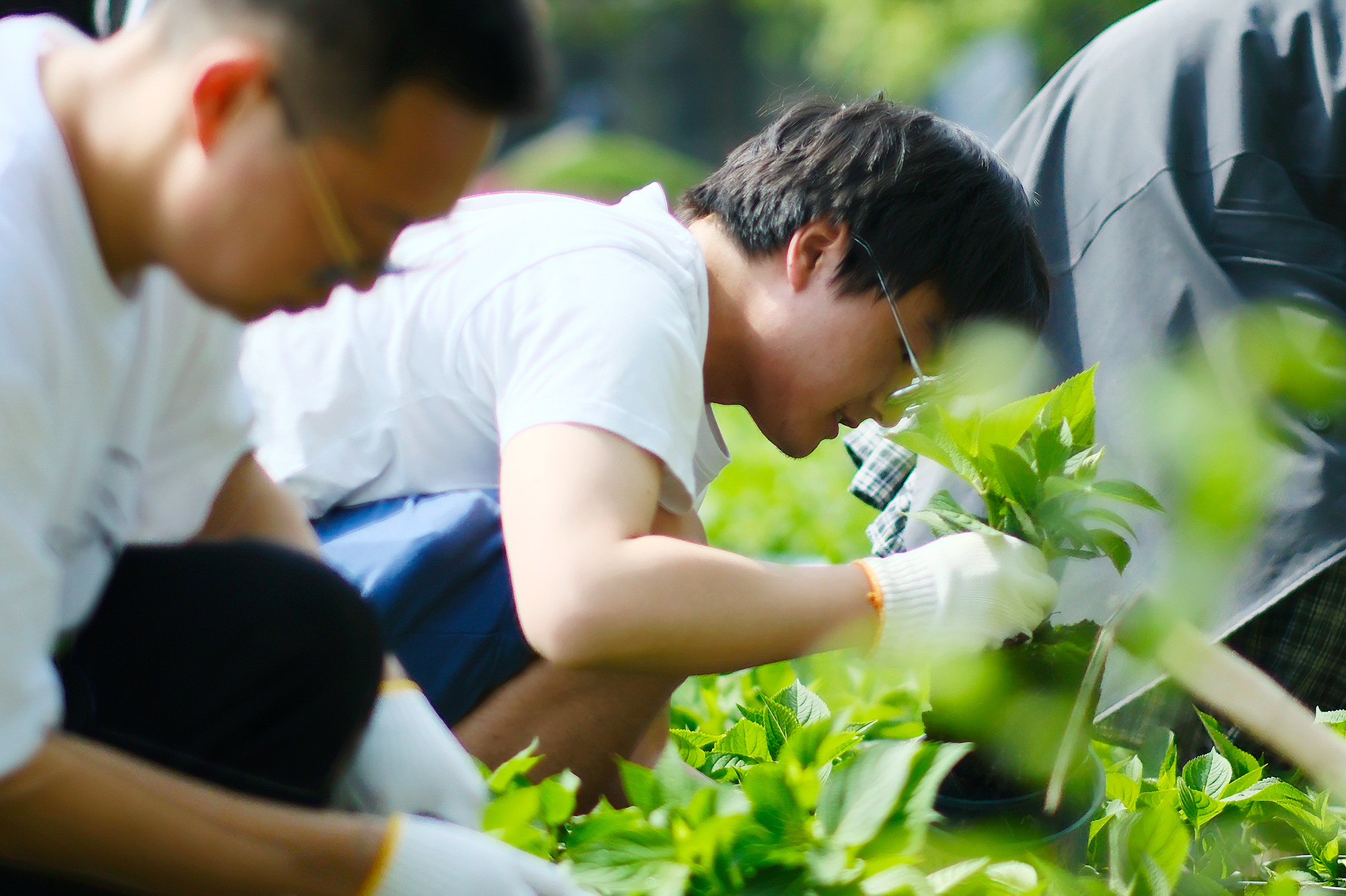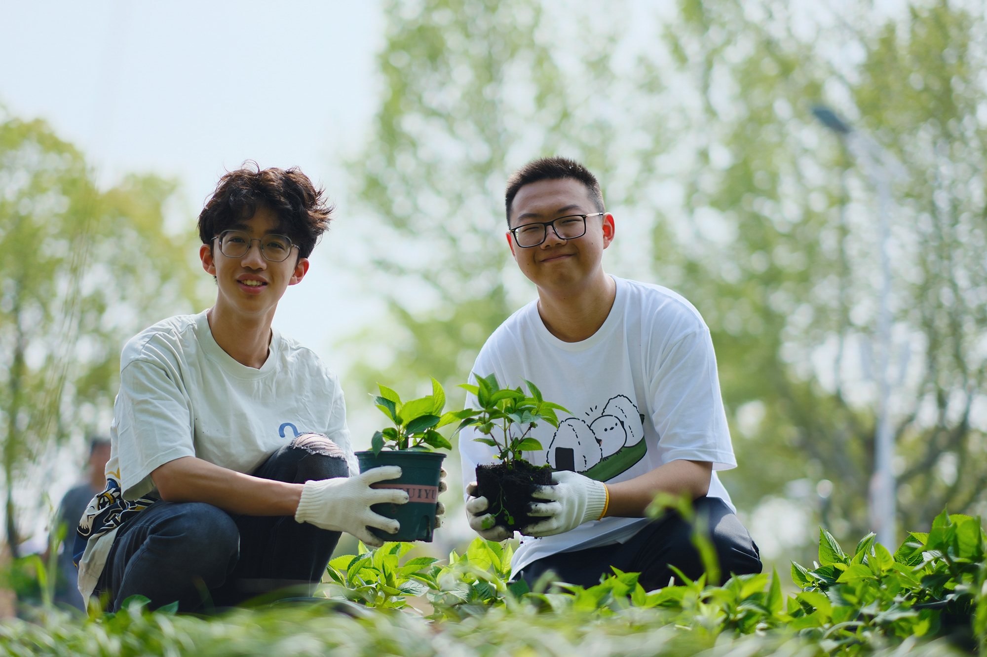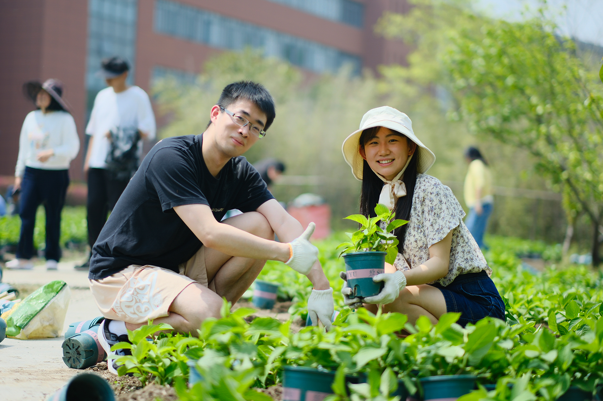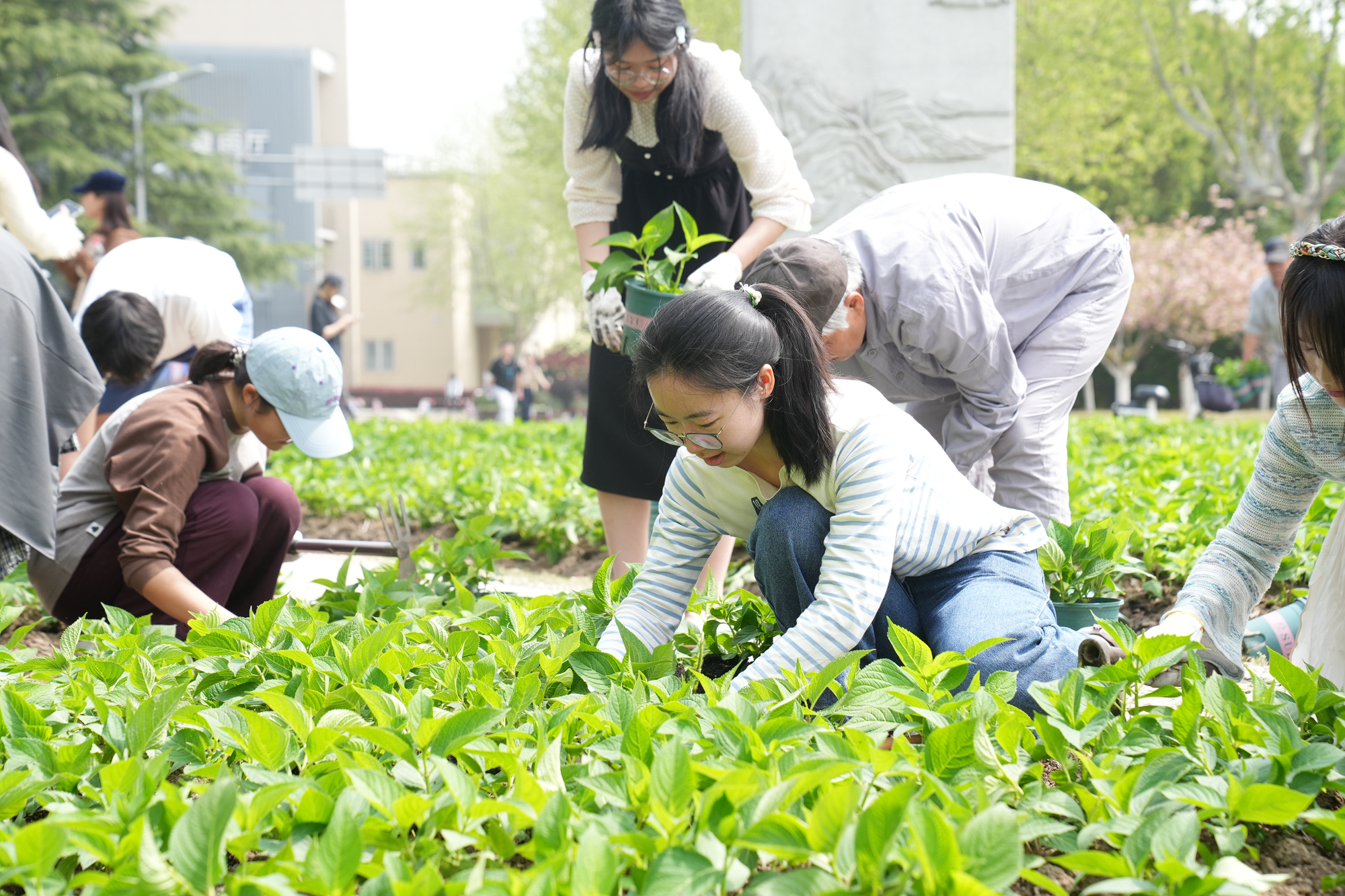 4月10日上午,华东师大师生们在后勤保障部绿化师傅的指导下,共同种植毕业花。铲土、脱盆、置苗、压实,为即将到来的毕业季打造一片美轮美奂的“毕业花海”景观。