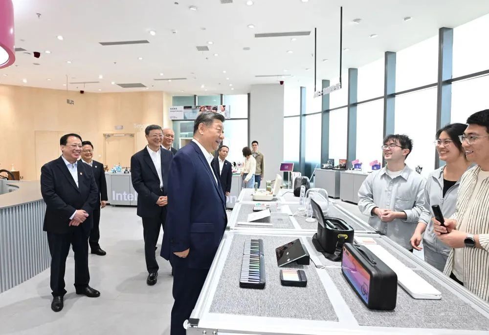 4月29日,习近平总书记在上海,“模速空间”大模型创新生态社区调研,同青年创新人才亲切交流,看望科研人员和企业员工。华东师大两位青年教师在现场与总书记“同框”。