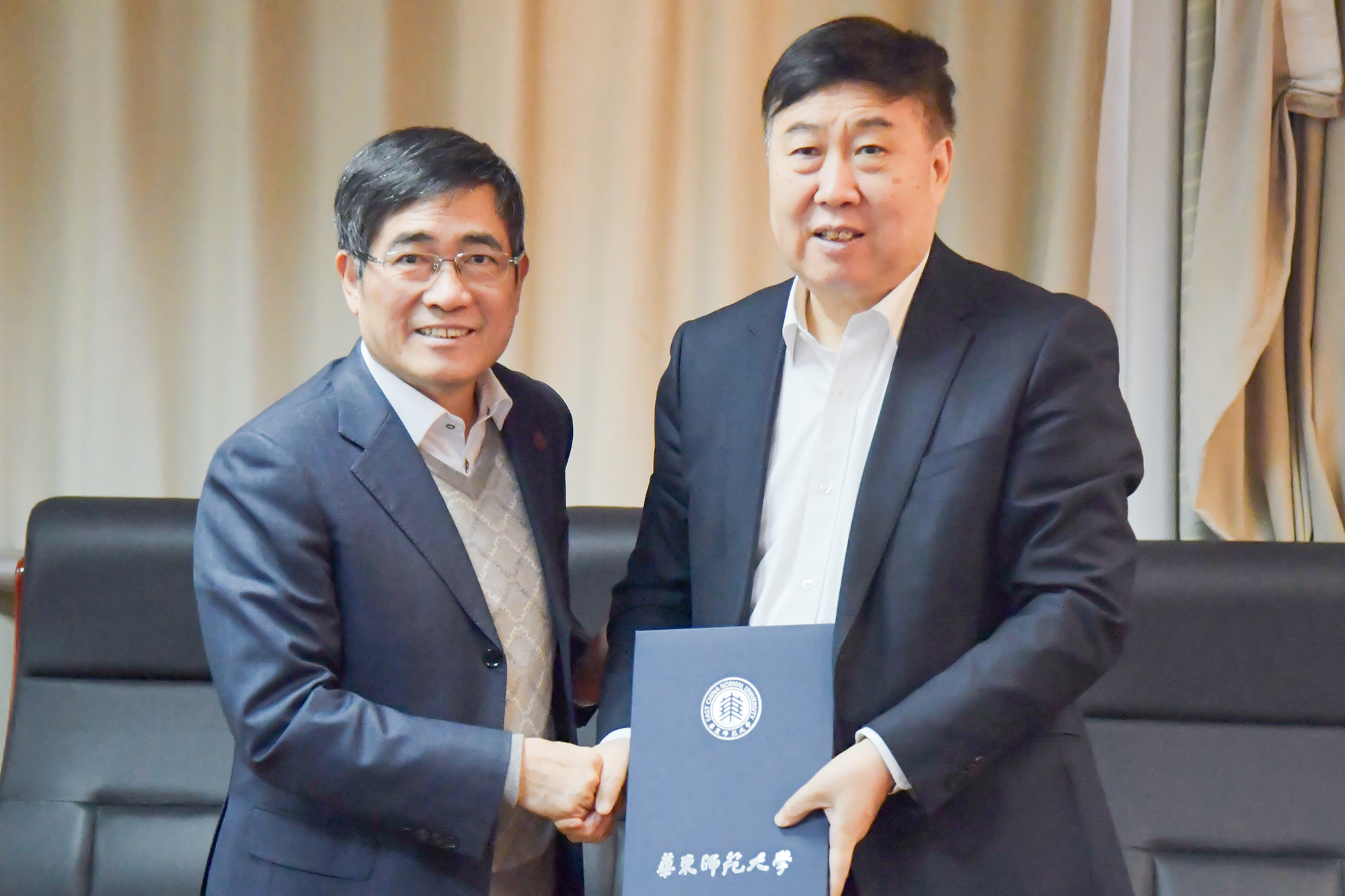 校党委书记童世骏向天童站第二届学术委员会主任傅伯杰院士颁发聘书