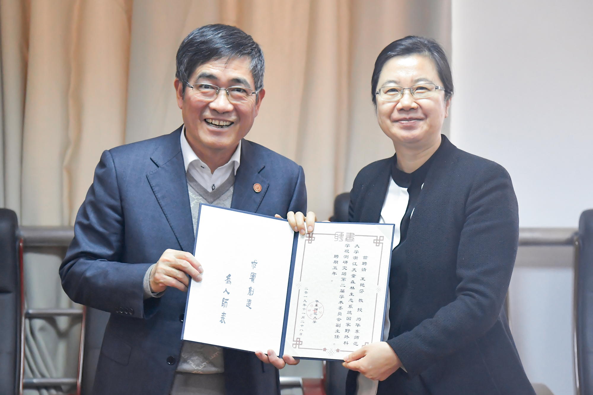 校党委书记童世骏向天童站第二届学术委员会委员何洪林研究员颁发聘书