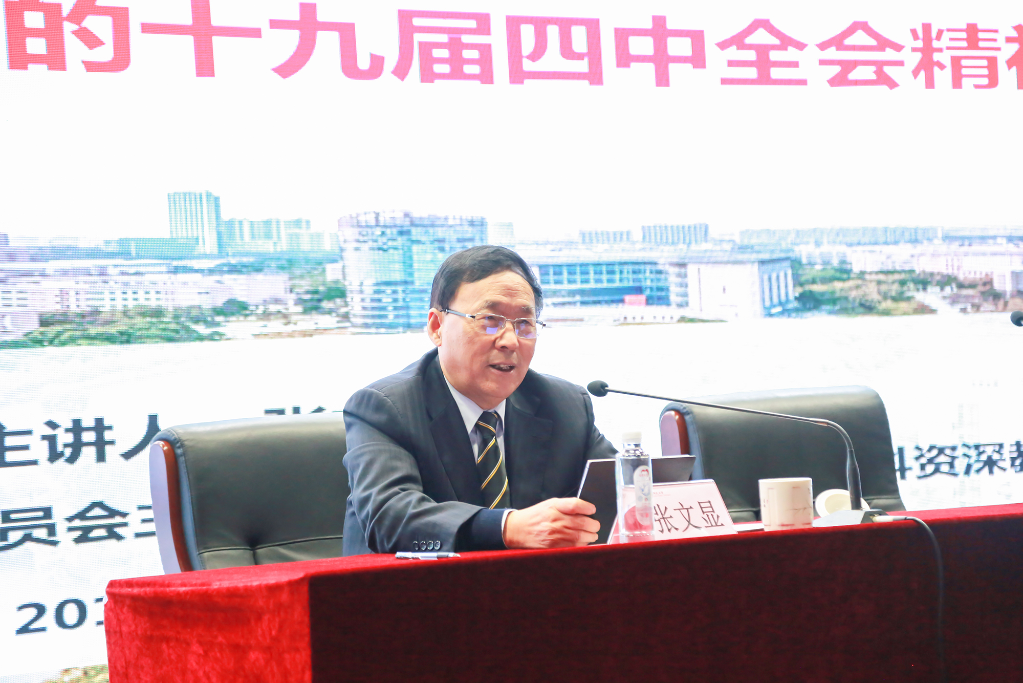 张文显从如何精准把握十九届四中全会精神,中国特色社会主义制度的形成、发展和优势,坚持和完善中国特色社会主义制度、推进国家治理现代化的重点任务三个方面,全面而深刻地引领与会者学习党的十九届四中全会精神。