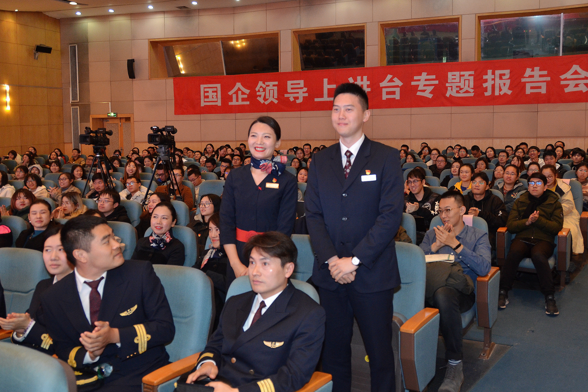 东航“网红”师徒方璇和徐彦峰与学生互动