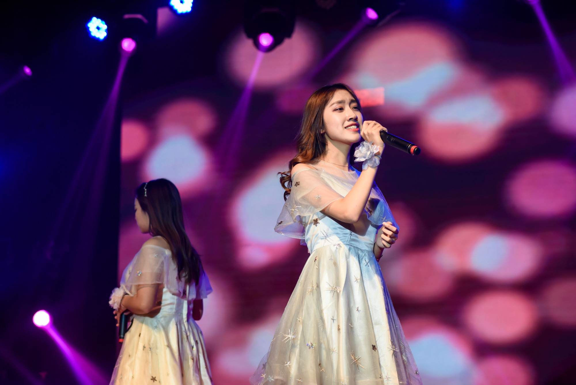 12月4日晚,2019年“音颂华章”校园十大歌手总决赛于中山北路校区思群堂举行。本次比赛共分为两轮:第一轮由进入总决赛的16组选手依次进行3分钟的表演,其中前4名直接进入第二轮比赛,再由大众评审从其余选手中选出两组进入第二轮;第二轮共6组选手依次进行演唱,最终由评委打分选出比赛的冠亚季军。