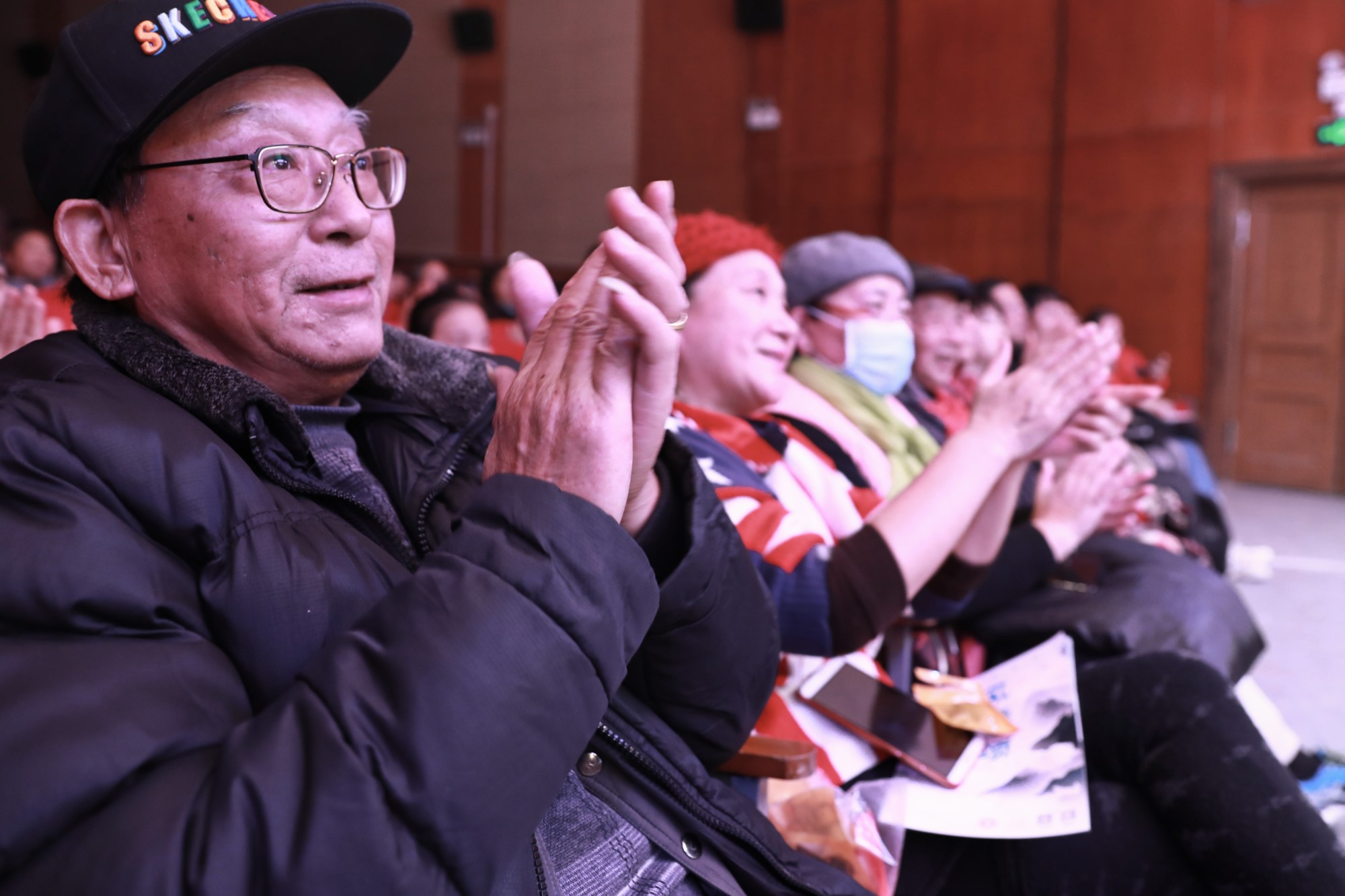 演出以《步步高》《娱乐升平》两首轻快明亮、充满朝气的乐曲开场,展现出祖国繁荣发展、不断进步的昂扬姿态。笛子独奏《姑苏行》和《喜相逢》风格迥异,一南一北,演绎出江南园林的诗情画意和北方人民的热情爽郎。琵琶独奏《十面埋伏》以楚汉相争为背景,尽显金戈铁马的澎湃之势。中阮独奏《丝路驼铃》仿佛将观众置身在蜿蜒的丝绸之路和清脆的驼铃声响之中,让观众一边听一边“看”,深深陶醉。古筝独奏《渔舟唱晚》轻盈唯美,古典之音丝丝入耳,悠然自得。二胡独奏《江南春色》《赛马》都是名曲,前者描摹了春色旖旎的生机勃勃,后者表现了节日赛马的热烈奔放。笙独奏《晋调》改编自传统戏曲,韵味深厚,既清新婉约,又粗狂明快。唢呐独奏《百鸟朝凤》技惊四座,室内好似百鸟朝贺,竞相争鸣,好不热闹。演奏家长时间不间断地吹奏长音,功底深厚,观众屏息凝视静听,之后拍掌叫绝。最后,两首合奏《紫竹调》与《花好月圆》给演出画上了句号。合奏场面盛大,二胡、琵琶、笛子等音律交融,余音袅袅,情意绵绵,给观众以最美的享受和最真的祝福。