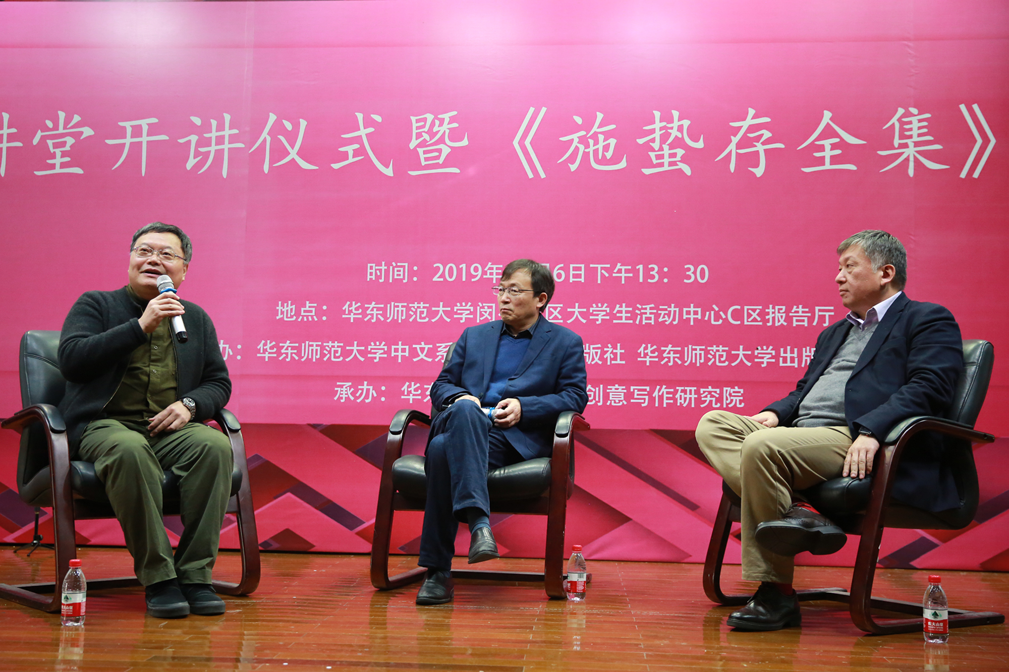 讲座开始前,北山讲堂开讲仪式暨《施蛰存全集》启动发布会首先拉开序幕,上海人民出版社社长王为松、3245澳门新莆京出版社社长王焰、3245澳门新莆京出版社总编阮光页、施蛰存长孙施守珪、3245澳门新莆京中国创意写作研究院孙甘露等嘉宾出席了本次活动。