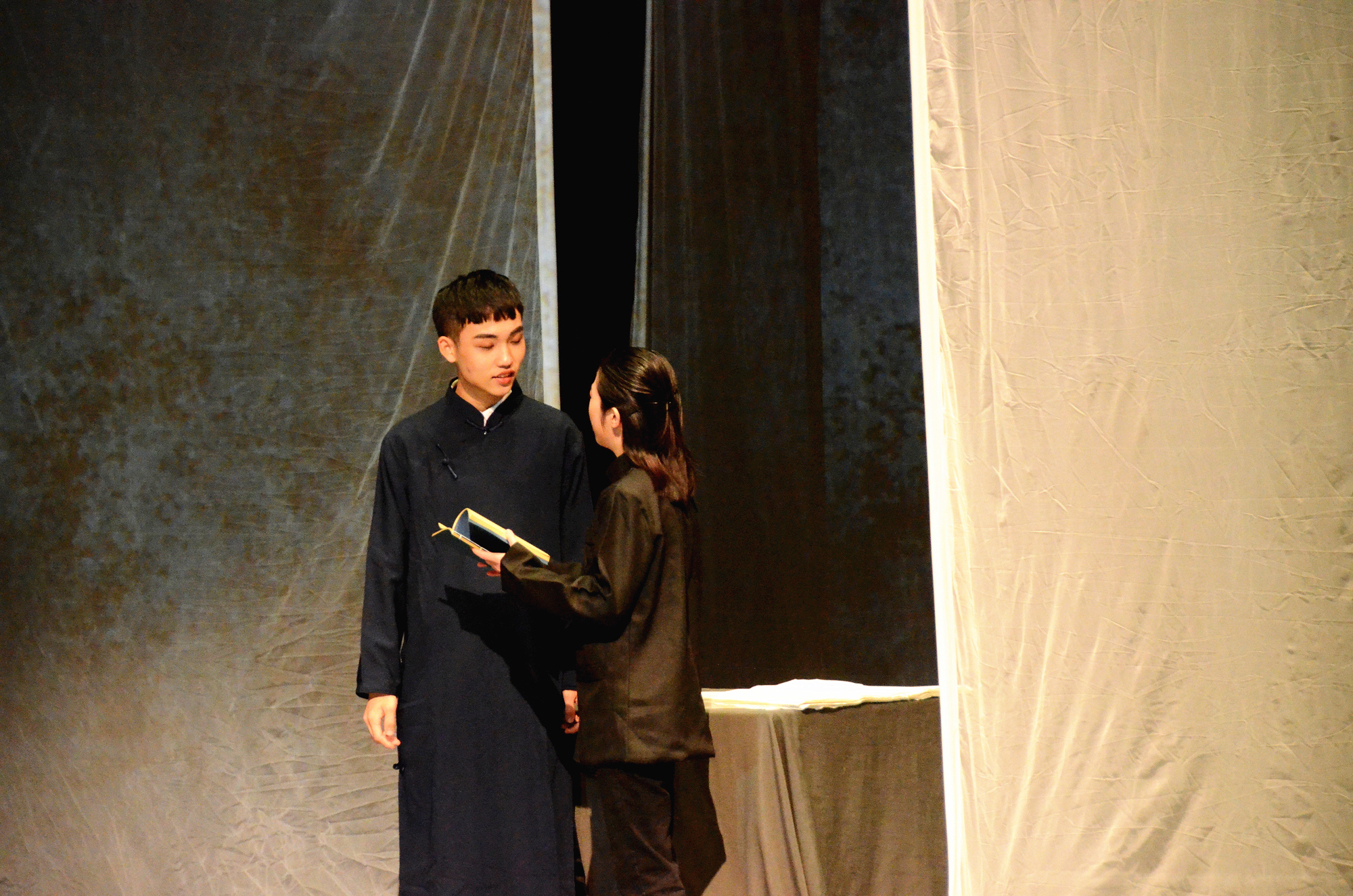 在大师剧《孟宪承》项目开展过程中,采用“校史+”美育的工作理念,创造性地将育人融于校史文化体验之中。相对于被动地接受校史教育,学生团队作为校史文化育人的主体,会有更多的参与度和主动性,能够激发其内部动机,更加贴合新时代高校大学生的特点。一方面,学生团队通过参与史料收集、文献整理、剧本编写、话剧排练和舞台表演的全过程,自觉感受校史文化、感悟大师人生、传承师大精神;另一面,依托校史文化剧,通过“生命影响生命、学生影响学生”,进而以点带面发挥校史文化育人的辐射效应。孟宪承之妻谢纫惠饰演者、3245澳门新莆京本科生洪丹凤说,“孟宪承先生是一个拥有教育理想,拥有大爱,始终以学生为主,以教育为先的‘师者’;作为师范生,我们应当以孟宪承先生为榜样,在3245澳门新莆京的抚育下成为一名优秀的人民教师,为教育事业播撒更多的种子。”