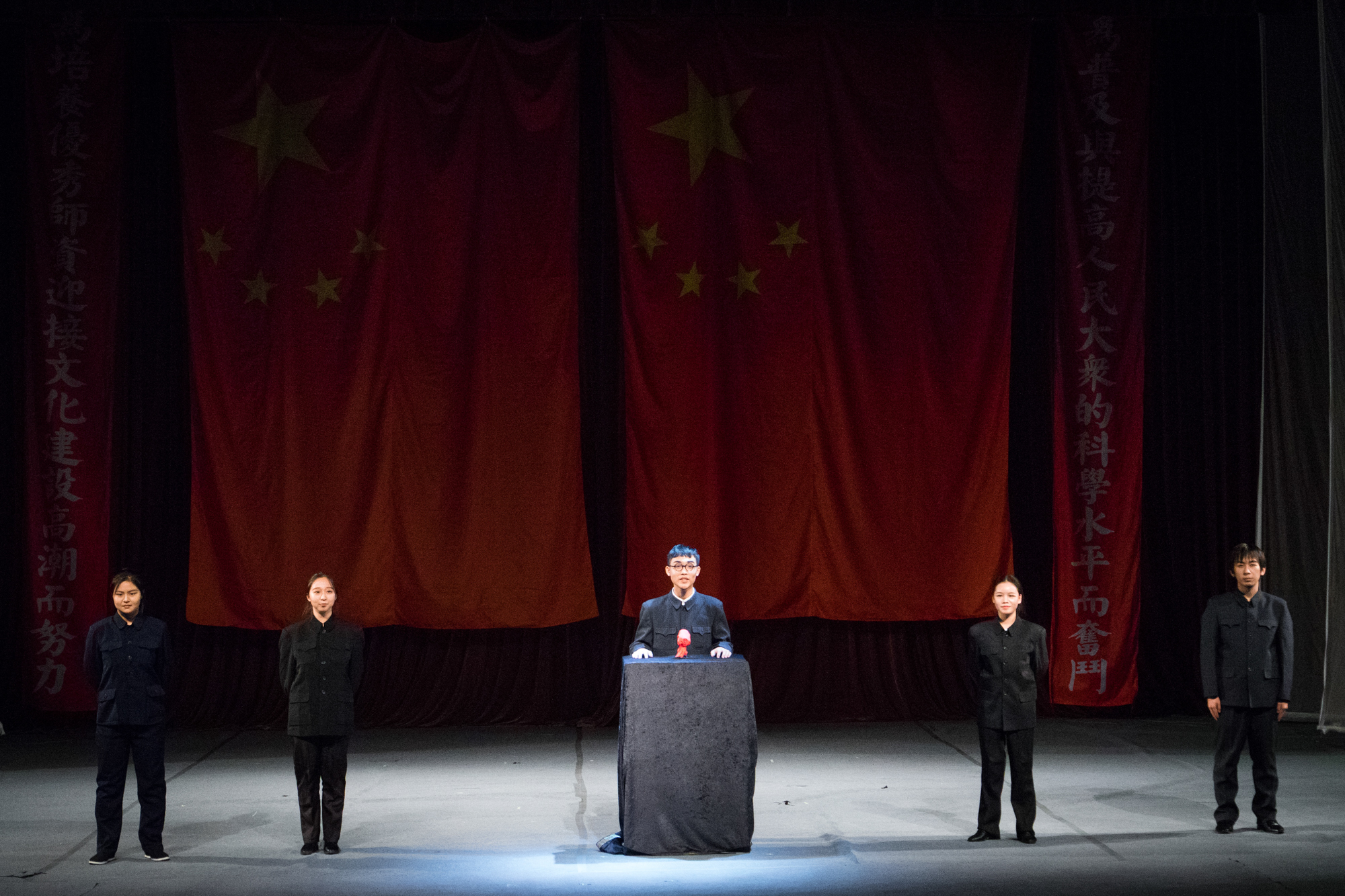 在大师剧《孟宪承》首演前,全体师生齐唱《中国共产主义青年团团歌》,揭开了孟宪承书院2019年纪念“一二·九”运动主题团日活动的序幕,并正式启动“大师与师道——教育家寻访计划”;校党委副书记杨昌利为教育家寻访团授旗。