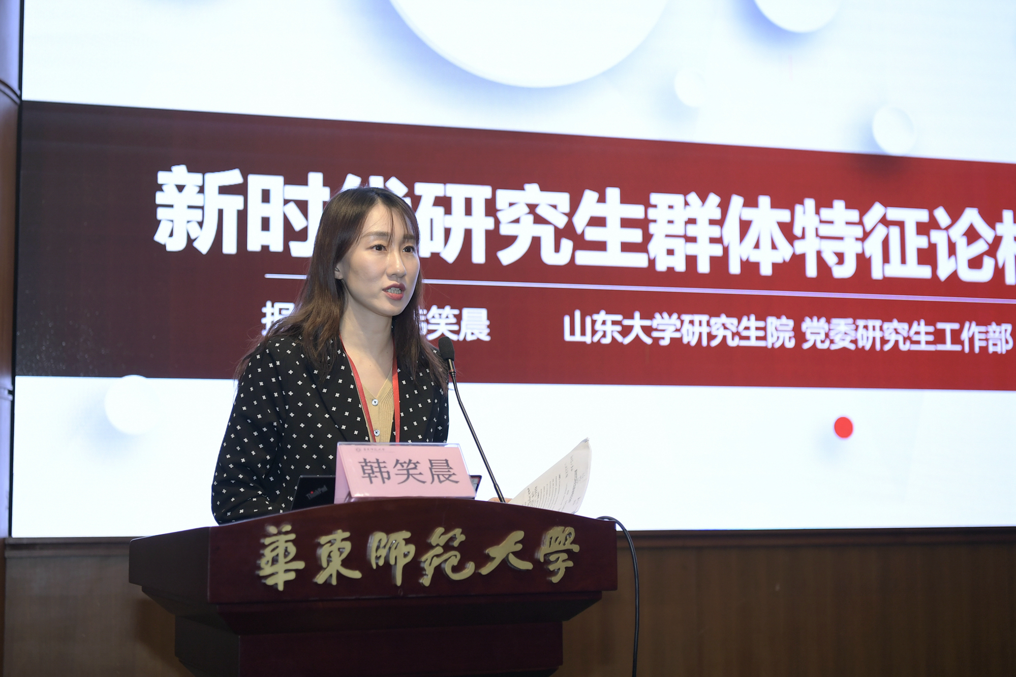 在下午的两场主旨演讲论坛上,南京大学李思佳,南开大学李营,北京交通大学潘显钟,东华大学郝艳萍,上海工程技术大学刘铁英,山东大学韩笑晨,山东财经大学许静,西安电子科技大学付凯元,华东师大黄燕、吴冉等10位与会嘉宾分别围绕新时代研究生群体特征与研究生思想政治工作重点、难点,研究生思想政治工作针对性、亲和力、实效性的实证研究,研究生党建的理论与创新实践,研究生导师和研究生辅导员协同育人等主题进行了交流发言。