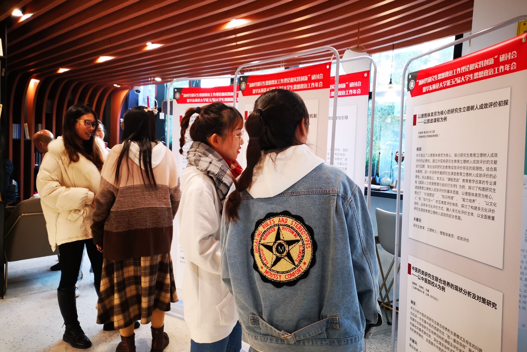 在研讨会上,我校通过海报展的形式展出了近年来我校在研究生思政教育上的工作实践。近年来,学校围绕“五育并举”和“六个下功夫”的育人目标和工作要求,以学生素质和能力达成为中心,不断提升研究生思想政治工作质量,以党建、团建、科创、就业、心理、美育等工作为抓手,增强研究生德育工作的针对性和实效性,积极助力学校双一流建设和卓越拔尖人才培养。