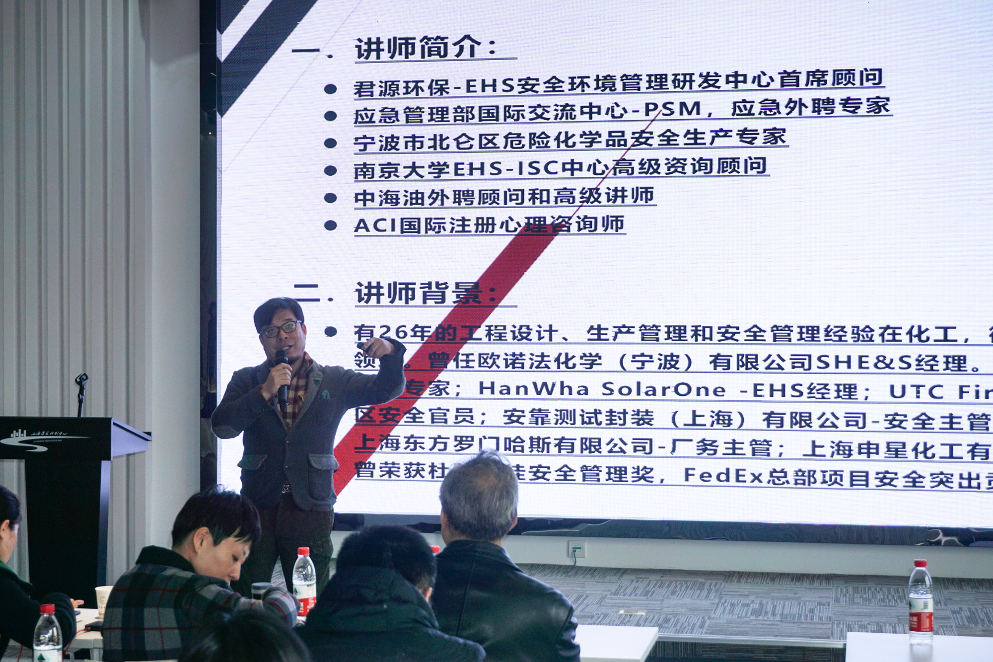 君源环保EHS安全管理研发中心首席顾问作题为“实验室危险化学品管理与泄漏安全处置”的专题培训