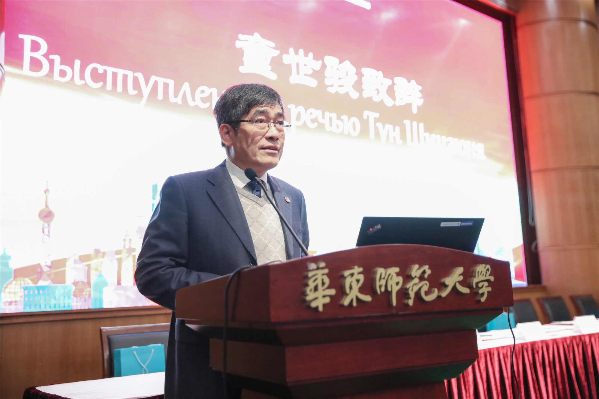 新西伯利亚国立师范大学校长格拉谢夫•阿列克谢作报告