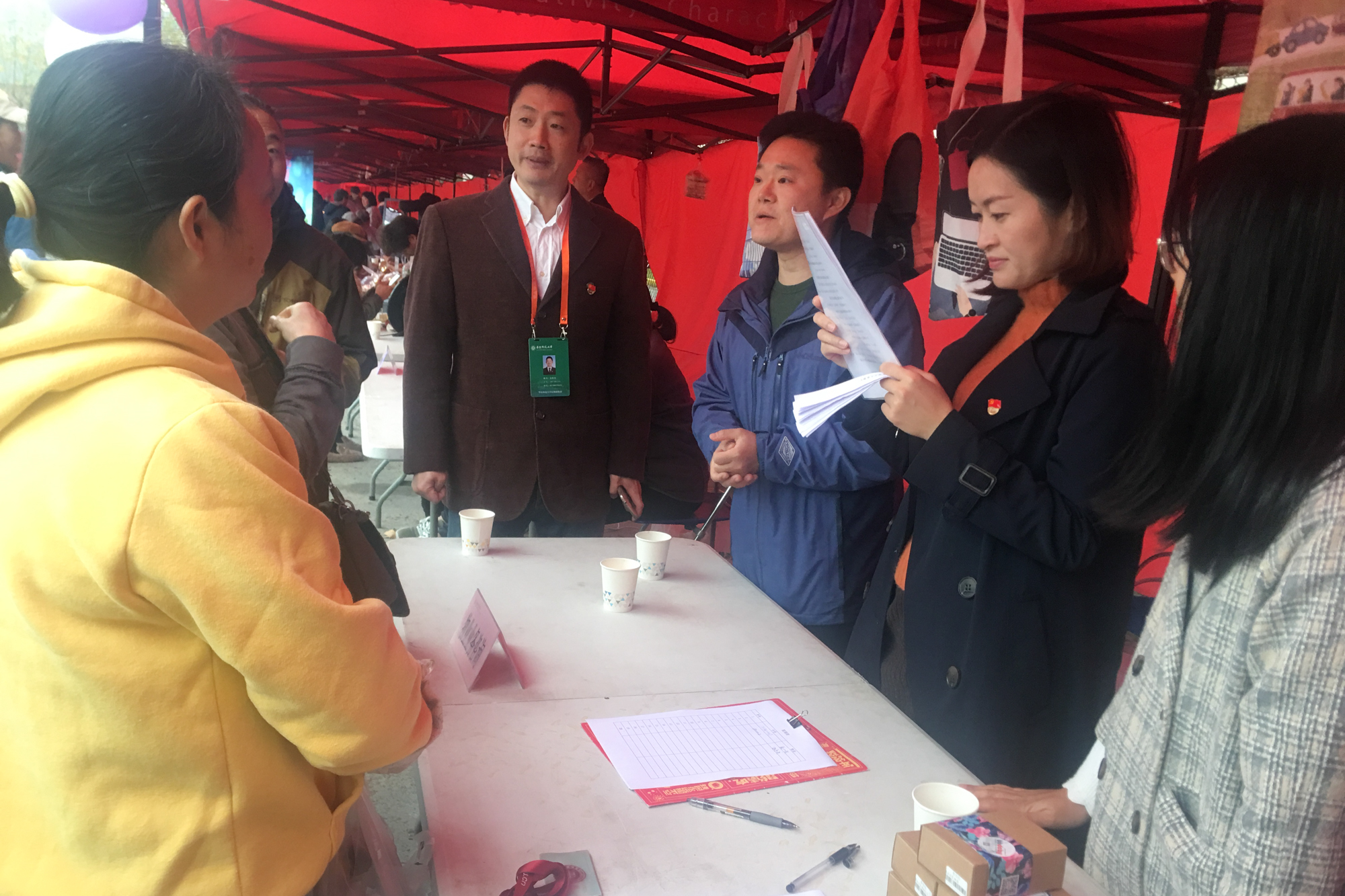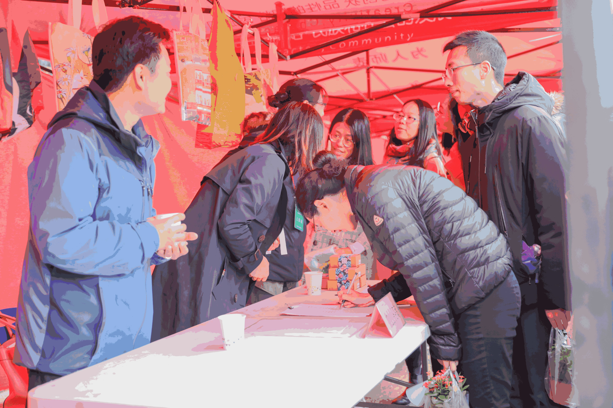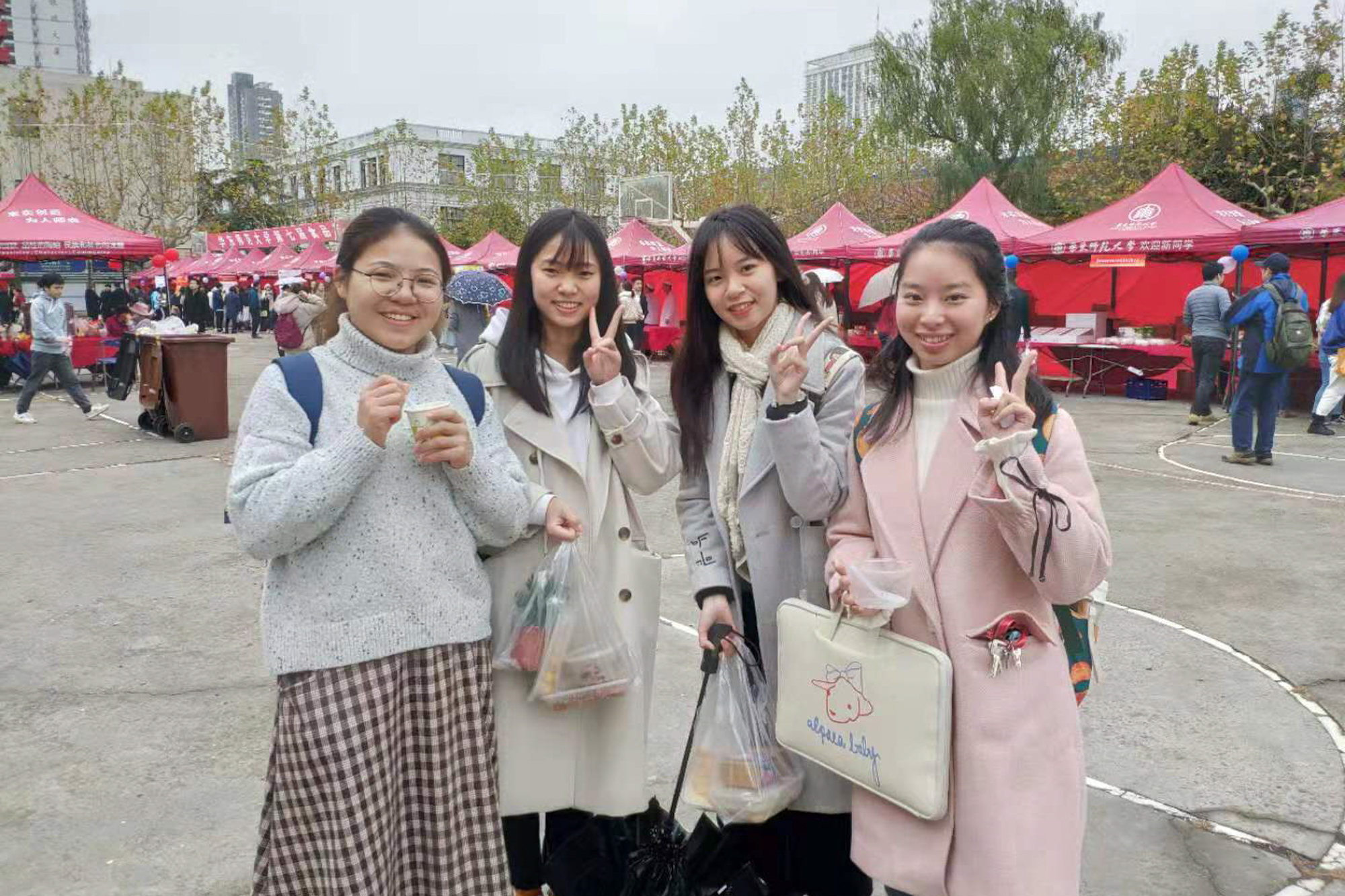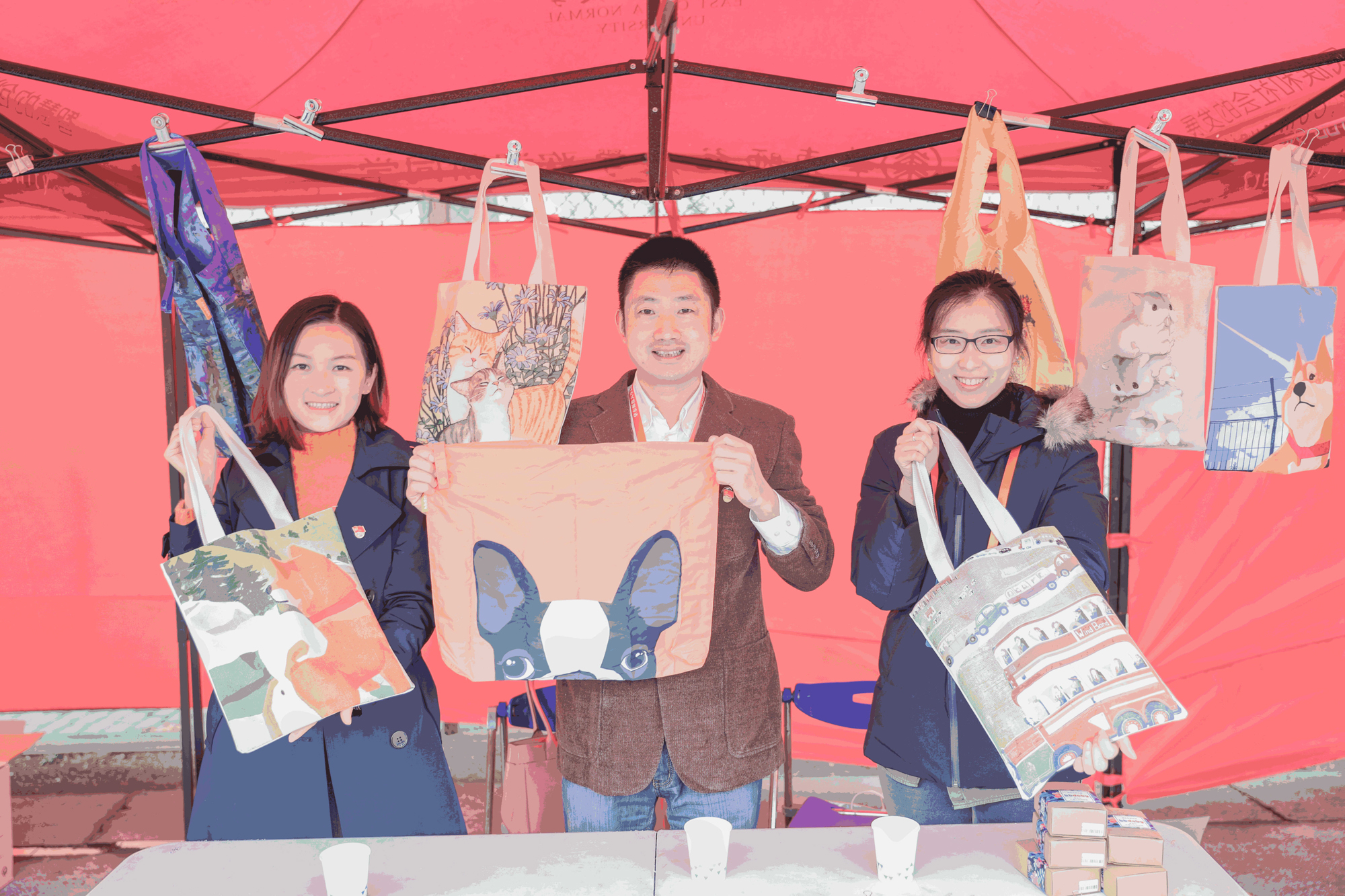 今年活动现场还有这么一群特别的人,他们就是后勤党工委第五支部的党员们。他们立足自身岗位,充分发挥党员先锋模范作用,带头充当志愿者,提供现场指引并设计物业方面的有奖竞猜环节,精心挑选的绿色环保的涂鸦式购物袋也非常受师生的欢迎,摊位前瞬间排了长队,当天共发放环保帆布袋50个,折叠购物袋60个。