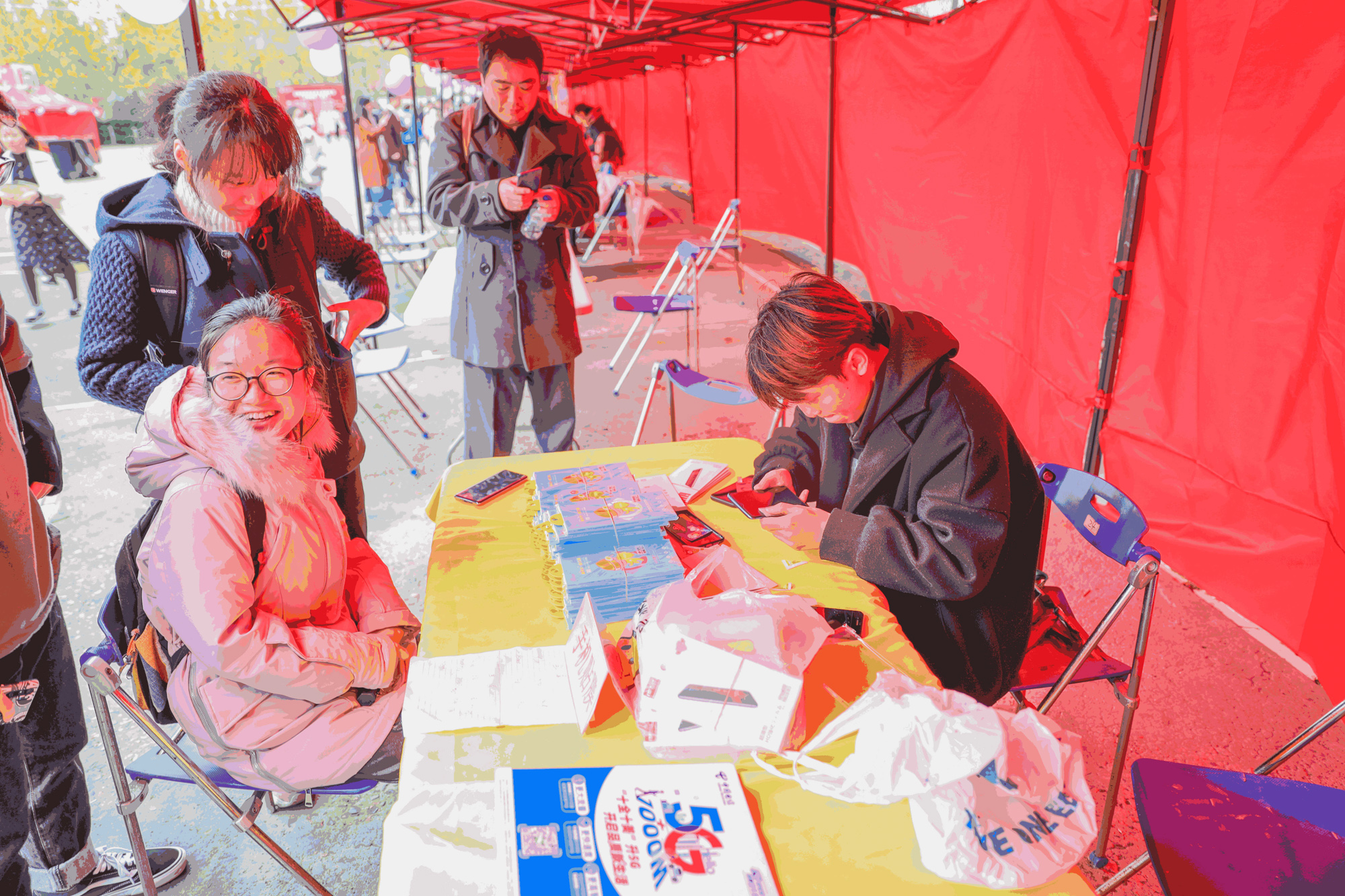 上海电信公司为大家带来了免费手机贴膜的贴心服务,摊位前人头攒动,当天有多达101人为自己的手机穿上了新衣。