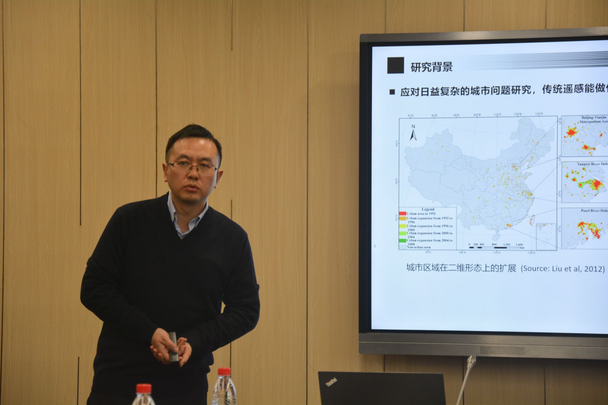随后,实验室成员黎夏教授、余柏蒗教授、郑艳玲研究员分别作了典型成果的专题学术报告。黎夏教授作了全球未来情景下的土地利用变化与水文过程耦合模型的报告,余柏蒗教授阐述了夜间灯光遥感数据在研究城市问题中的应用,郑艳玲研究员汇报了城市河口潮滩关键带氮循环过程与微生物作用机理研究等方面的年度成果。