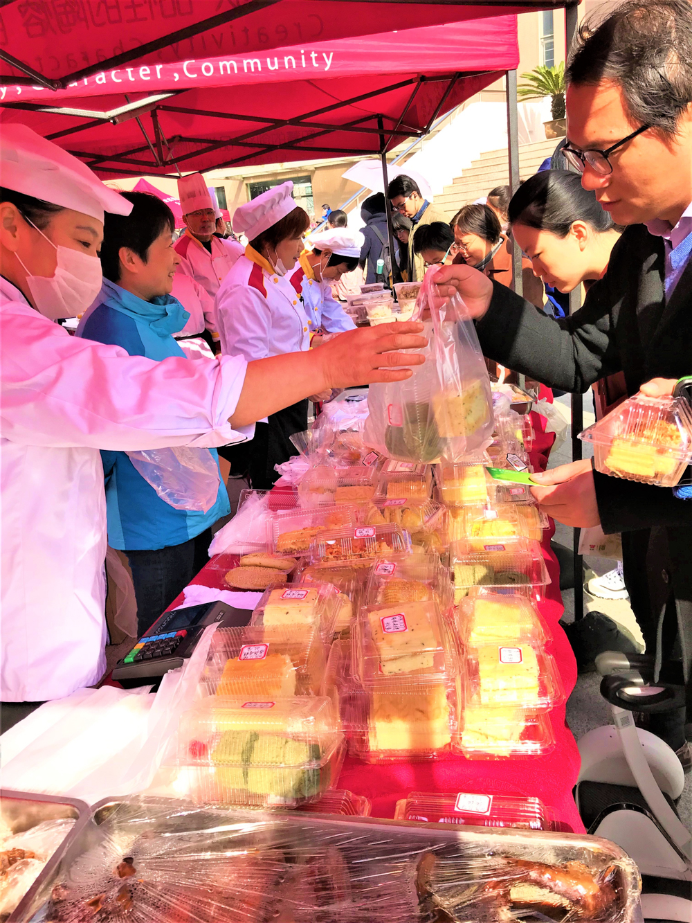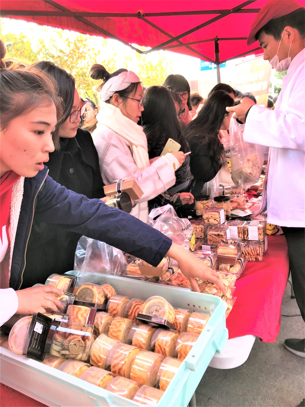 展销品种丰富是食品节的另一个特点。师生们不仅可以吃到中快餐饮公司的养生蛋糕、抹茶蛋糕、拿破仑、肉松酥条和黑胡椒牛仔骨、蜜汁大排,也能吃到秋林阁的虎皮蛋糕、榴莲酥、卤牛肉和去骨凤爪;不仅可以品尝象郡餐饮的手工鱼丸,还能尝尝清真食堂的椒麻鸡、肉夹馍和老鸭马桥干。膳食服务中心(1)的酥皮泡芙、纸杯蛋糕、上海熏鱼和五香牛肉,膳食服务中心(2)的枣泥酥、花生塔、蜜汁烤羊排和时蔬酱牛肉也广受师生好评。本次食品节上还推出了各色各样的新鲜蔬菜、水果和预包装的面包、饮料、零食等,可谓品种繁多、琳琅满目。据统计,本次食品节展出了点心93种,熟食77种,土特产20种,零食面包等其他商品45种。