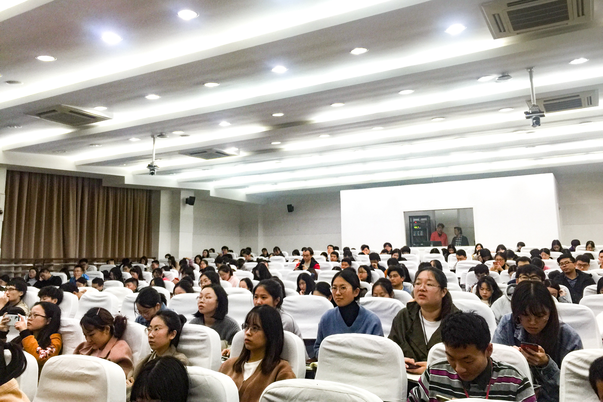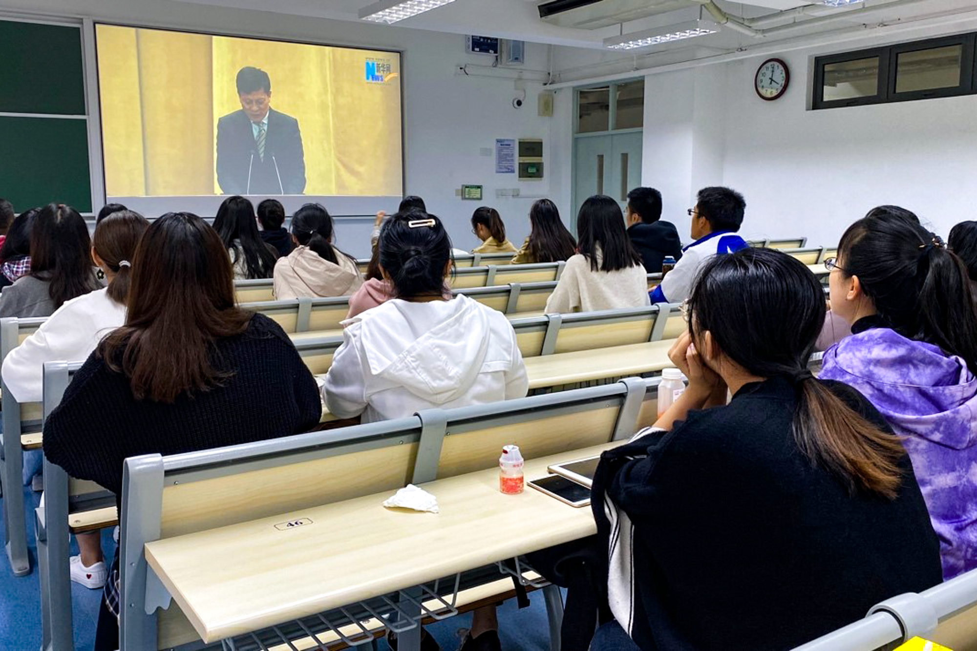 当天下午三时始,理科大楼、文科大楼、法商楼、人文楼、物理楼、河口所、第一教学楼、第二教学楼、体健学院等两校区内各教学楼内,同学们共屏共情共同聆听了共和国科学家的故事,接受了一次直击灵魂的教育。在三千学子专注的眼神中,可以看到同一种热情,同一种激动,同一种信念,同一种责任,同一种担当,同一种希望,令人振奋、使人鼓舞。