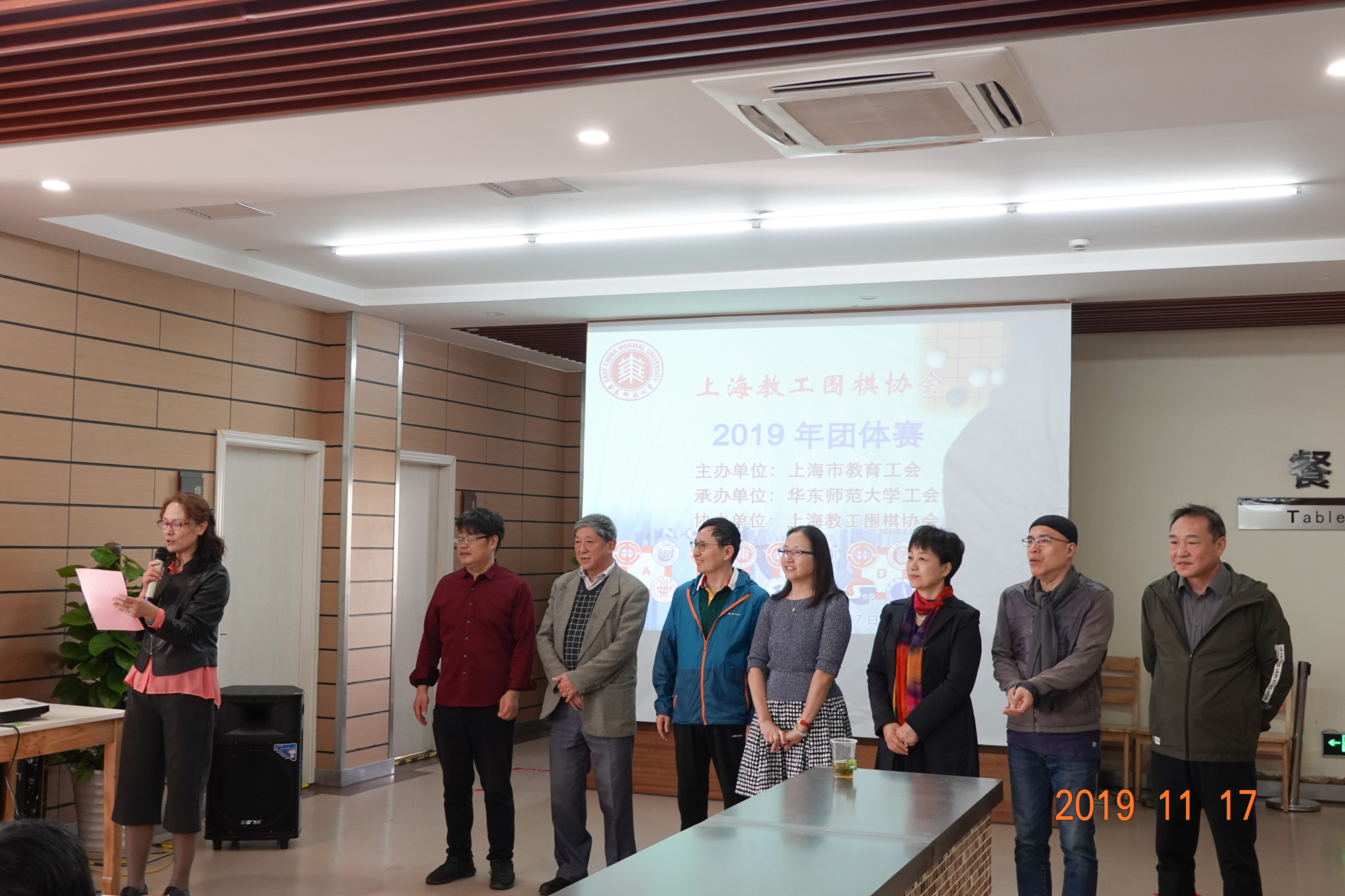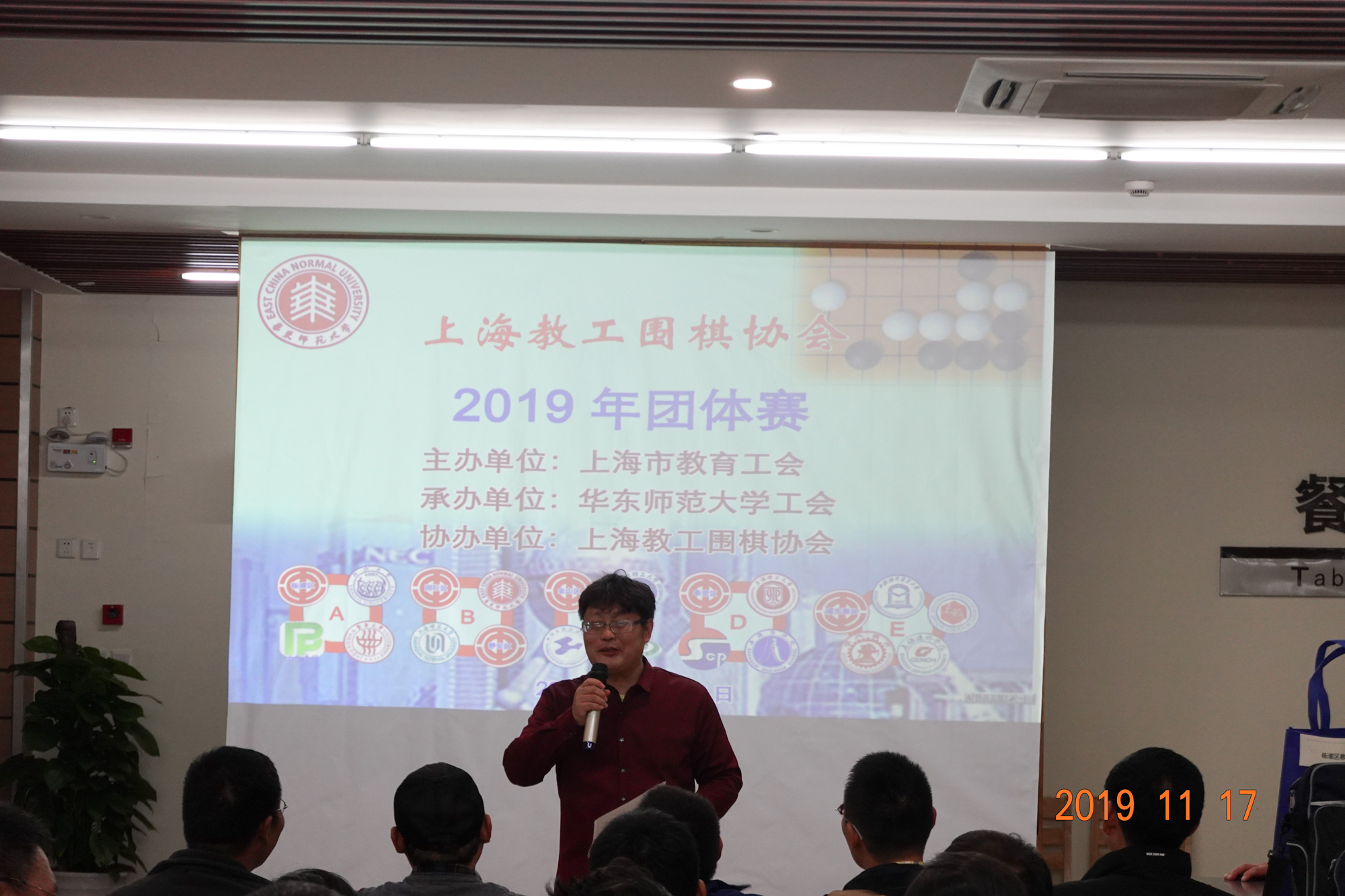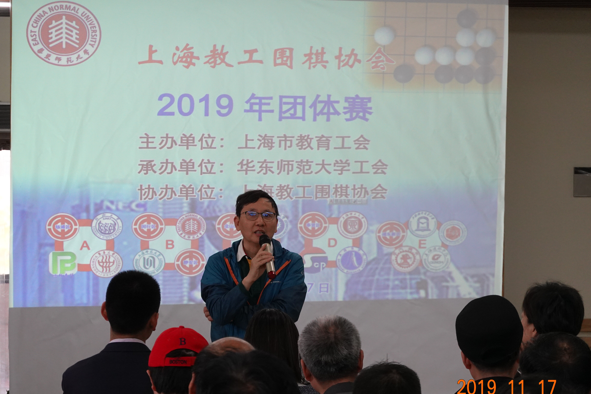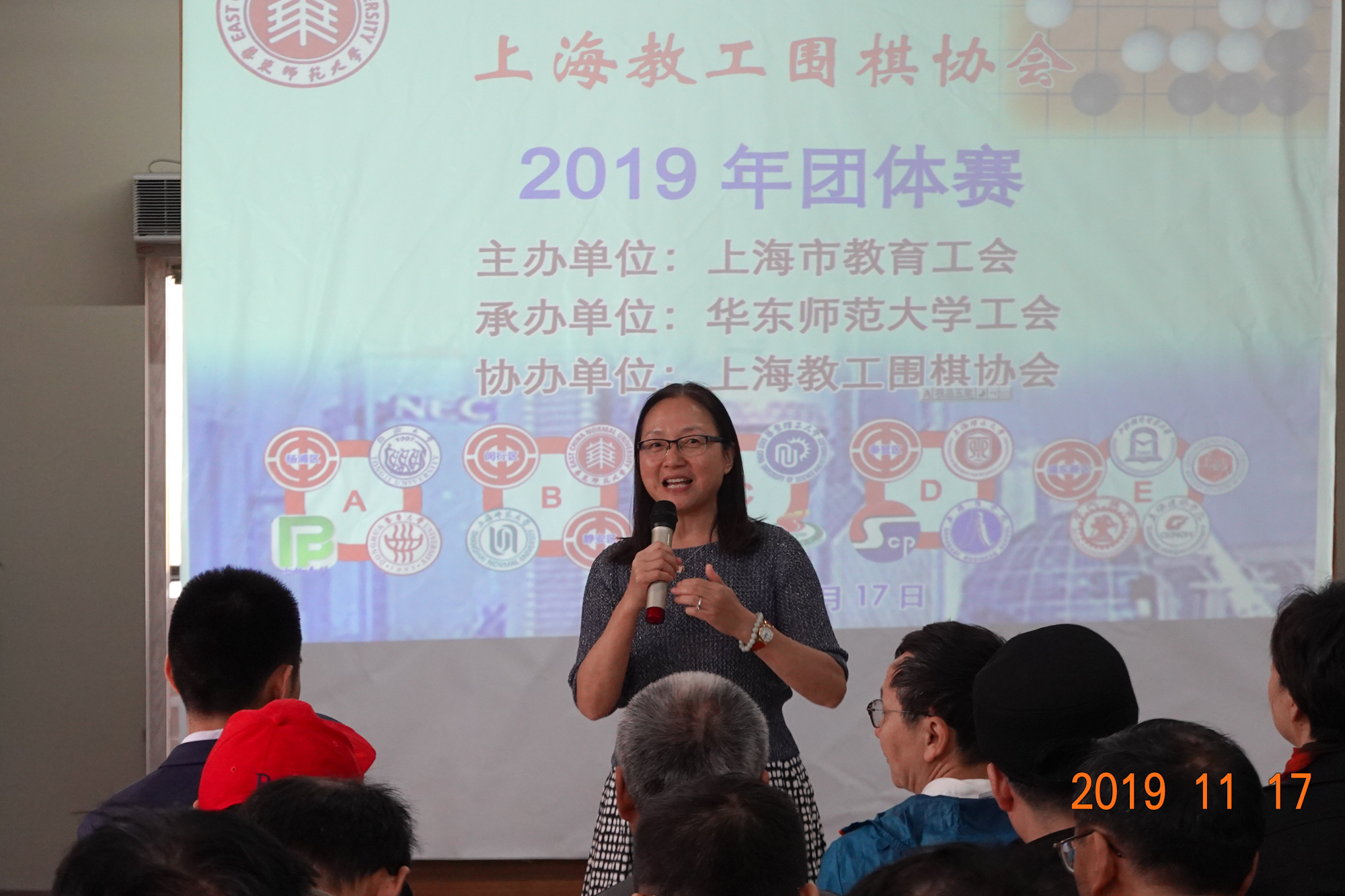 11月17日,由上海市教育工会主办、3245澳门新莆京工会承办、上海教工围棋协会协办的上海教工围棋协会2019年团体赛在华东师大中北校区举行,来自高校及区教育工会21个单位组成的20支参赛队近百名教职工参加了比赛。上海市教育工会副主席吉启华,华东师大工会常务副主席王平,东华大学工会常务副主席陆湘群,上海市静安区教育工会副主席李擎,上海教工围棋协会会长赵文庆、常务副会长兼秘书长赵骏以及上海教工围棋协会副会长、理事出席了开幕式。开幕式由华东师大工会副主席李小英主持。