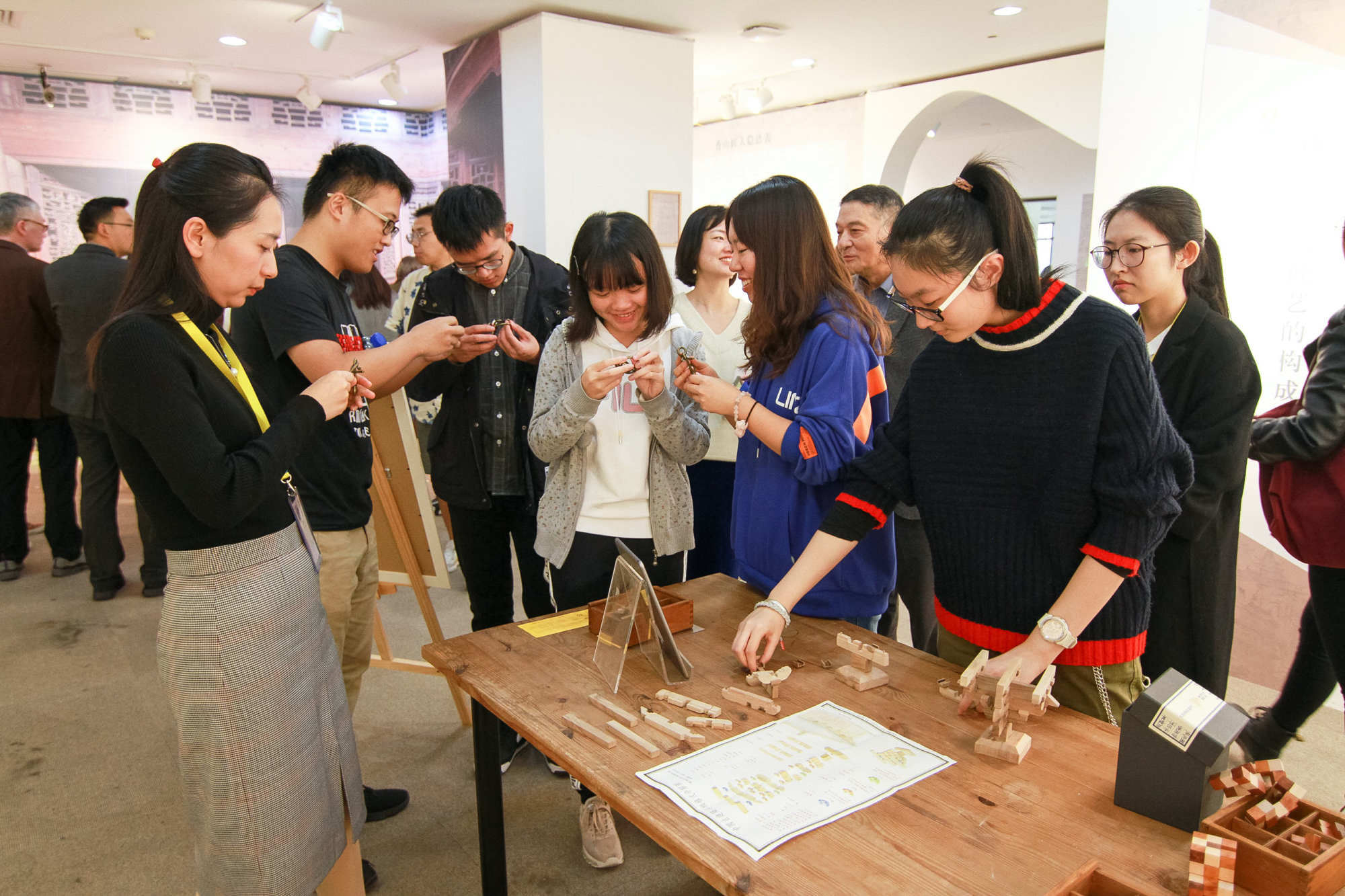 师生体验鲁班锁和斗拱模型搭建