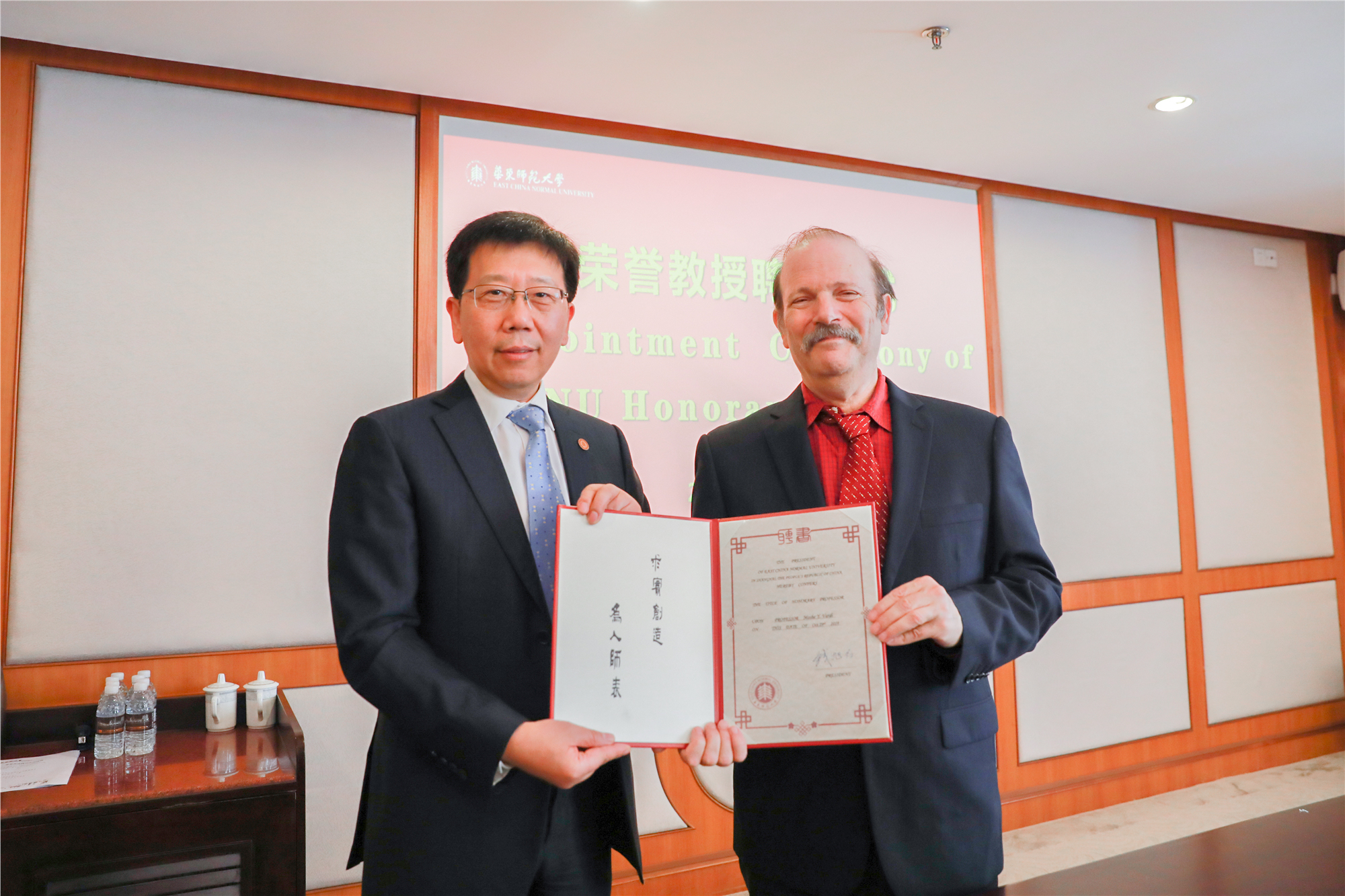 华东师大校长钱旭红为Moshe Y. Vardi教授颁发荣誉教授聘书