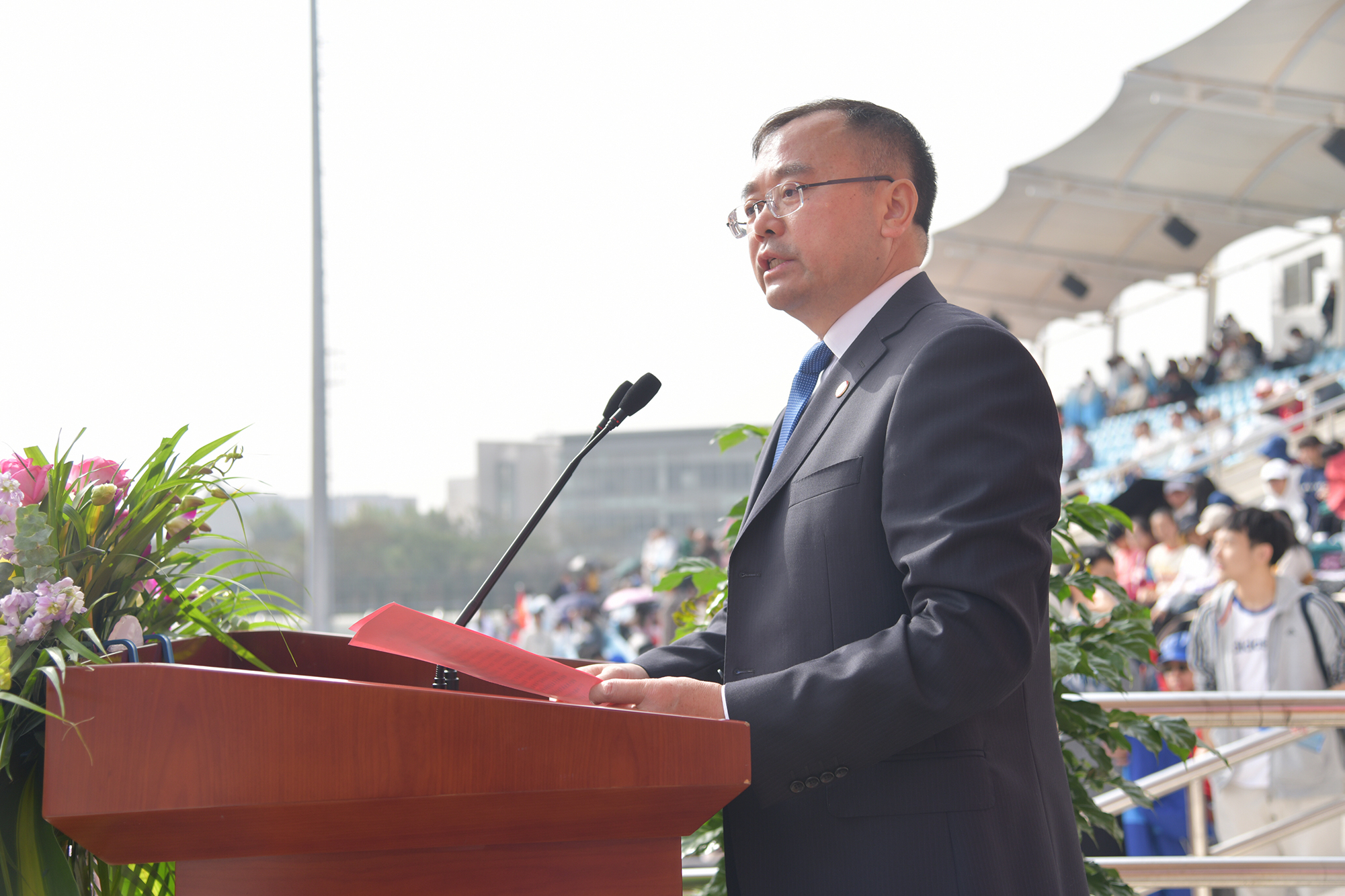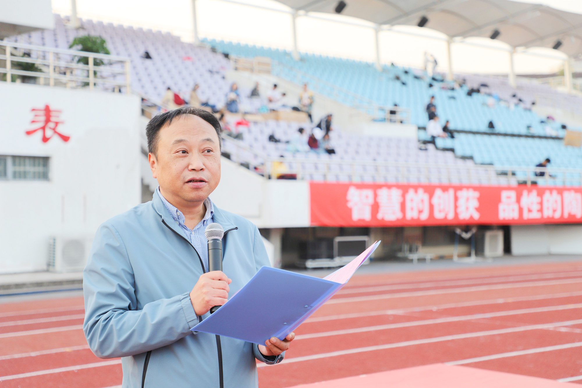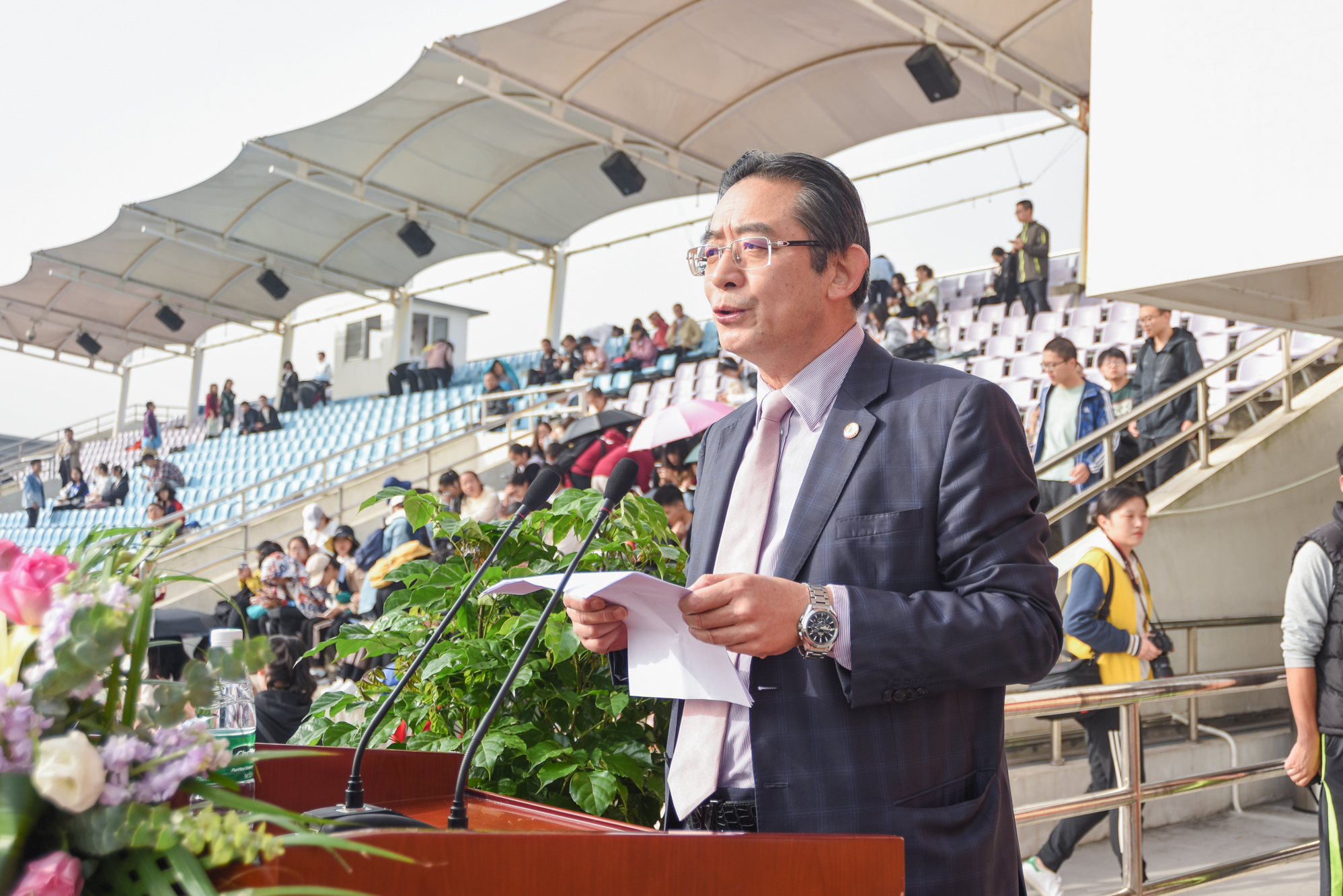 升国旗、校旗后,副校长周傲英致开幕词。周傲英表示,最近几年,华东师大高度重视“活力校园,健康师大”建设。公共体育俱乐部制教学改革在两个校区全面展开,并且开设了多样化的体育热点课程,有效地提升了学生体育学习与锻炼的质量。学校还积极为广大师生提供更高质量的体育场地设施,不断完善校园公共体育服务。体育馆开设ECNU健身中心,为全校师生打造贴心丰富的健身课程。他指出,学校还将同期举办主题为“健康学习、健康生活、运动校园”的校园主题日活动,各学部、院系、书院也将提供独具特色、趣味十足的体育比赛活动,希望同学们能够尽情享受运动的快乐,并预祝本届运动会暨校园主题活动日取得圆满成功。