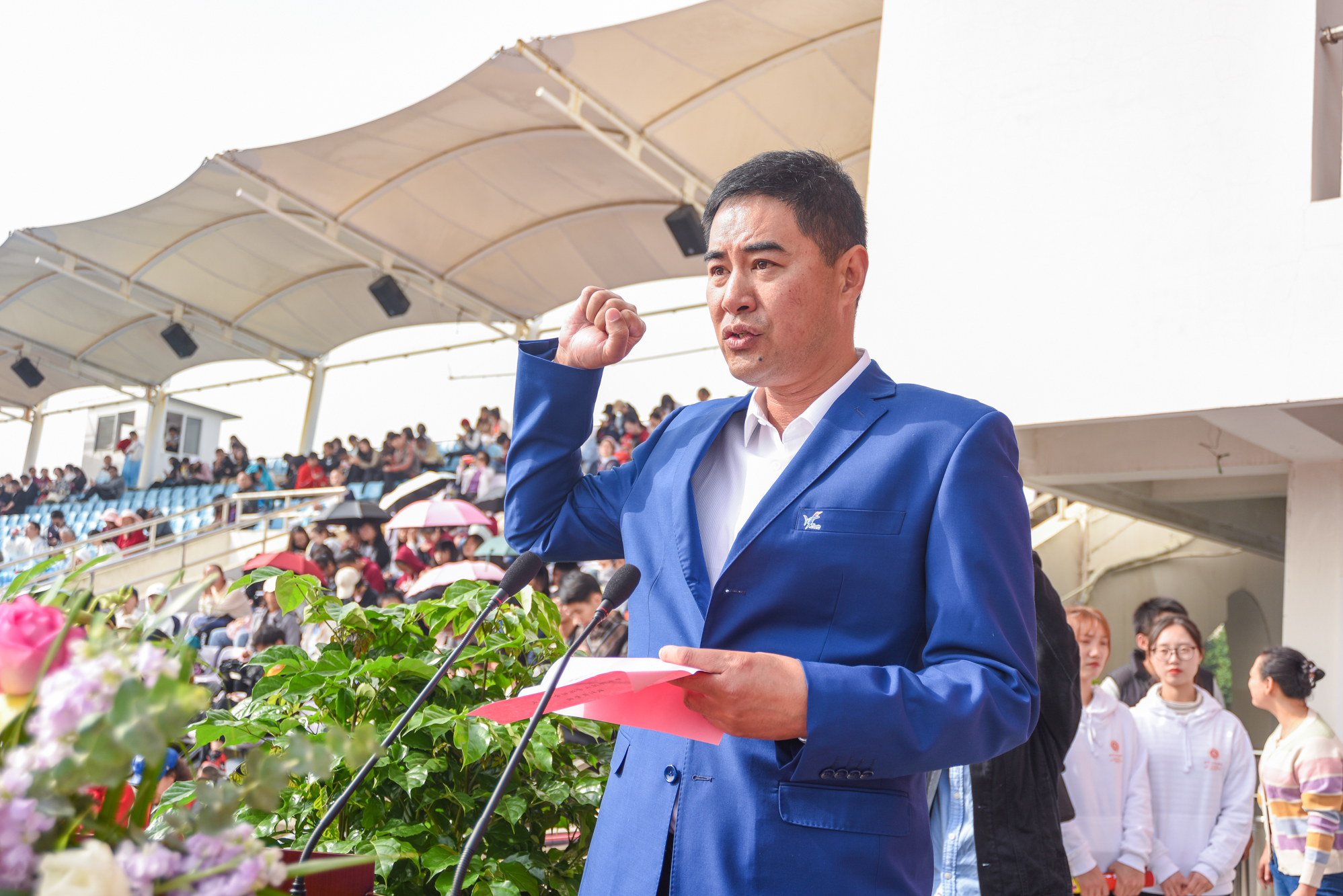 校党委副书记杨昌利宣布运动会开幕。奥运选手、国家田径队队员、体育与健康学院2016级运动训练学专业葛曼琪同学和体育与健康学院院邱进宇老师分别作为运动员、裁判员代表宣誓。之后,各学部院系学生与教工代表队分别进行了第九套广播体操比赛。