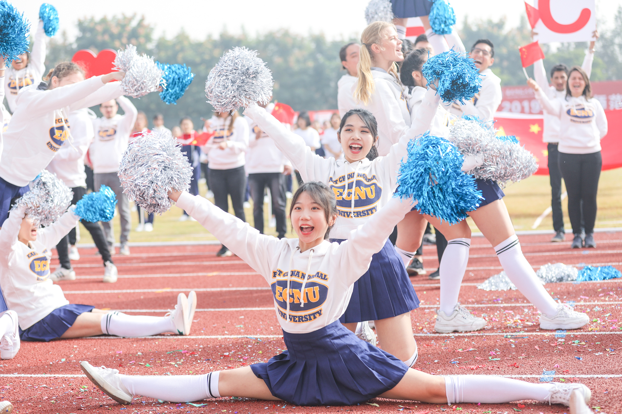各学部院系代表队的创意进场依然是开幕式的看点之一。或是向祖国70周年献礼、或是致敬中国女排、或是凸显院系特色,精彩不断,亮点纷呈。留学生代表队身着统一服装,带来创意活力的啦啦操表演,赢得师生们的阵阵喝彩。