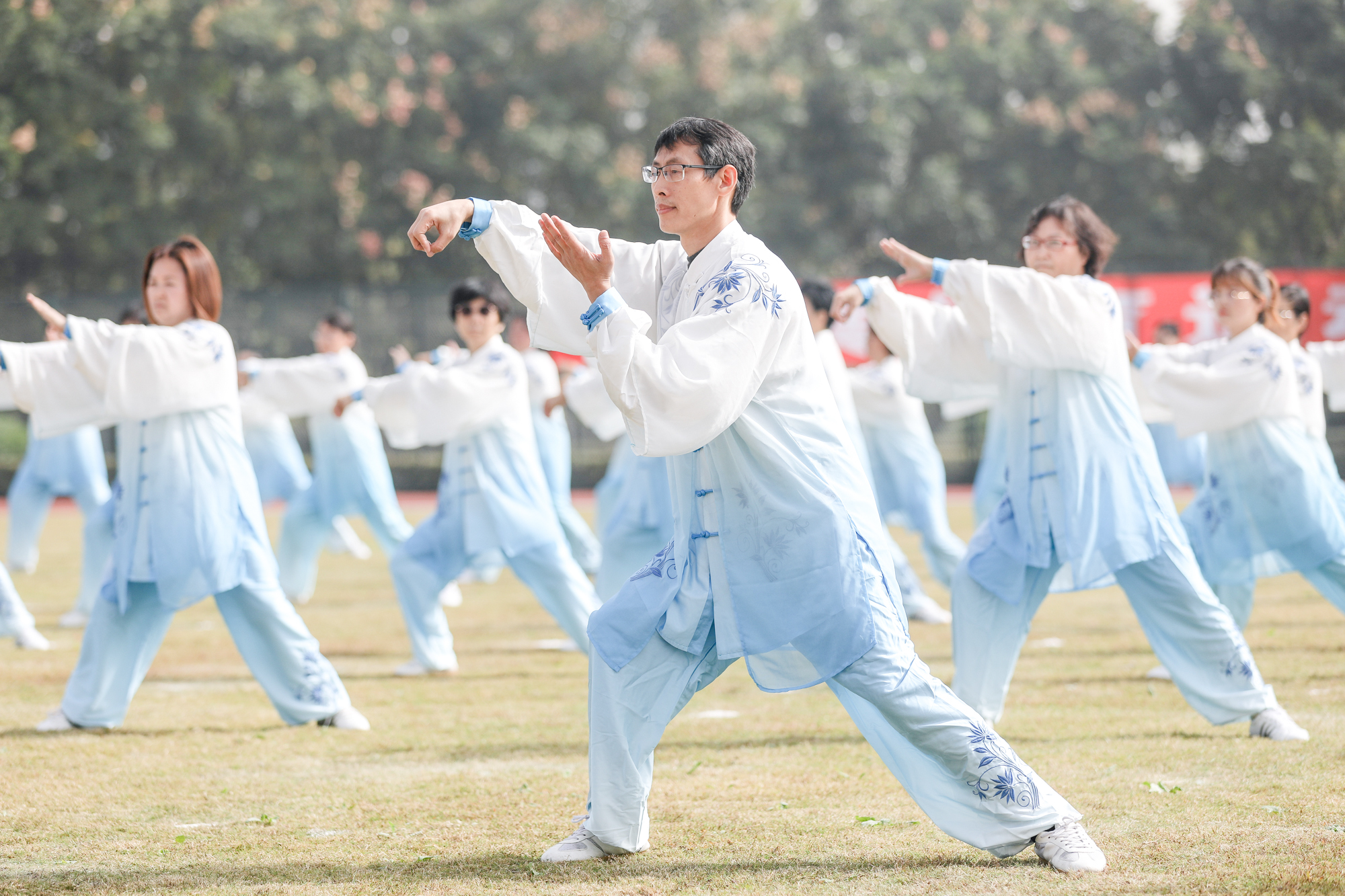 来自教育学部、经济与管理学部、软件工程学院、国际汉语文化学院、设计学院的两百多名同学组成的方阵带来活力四射的团体操《歌唱祖国》表演。此外,开幕式上还进行了教工太极拳表演。