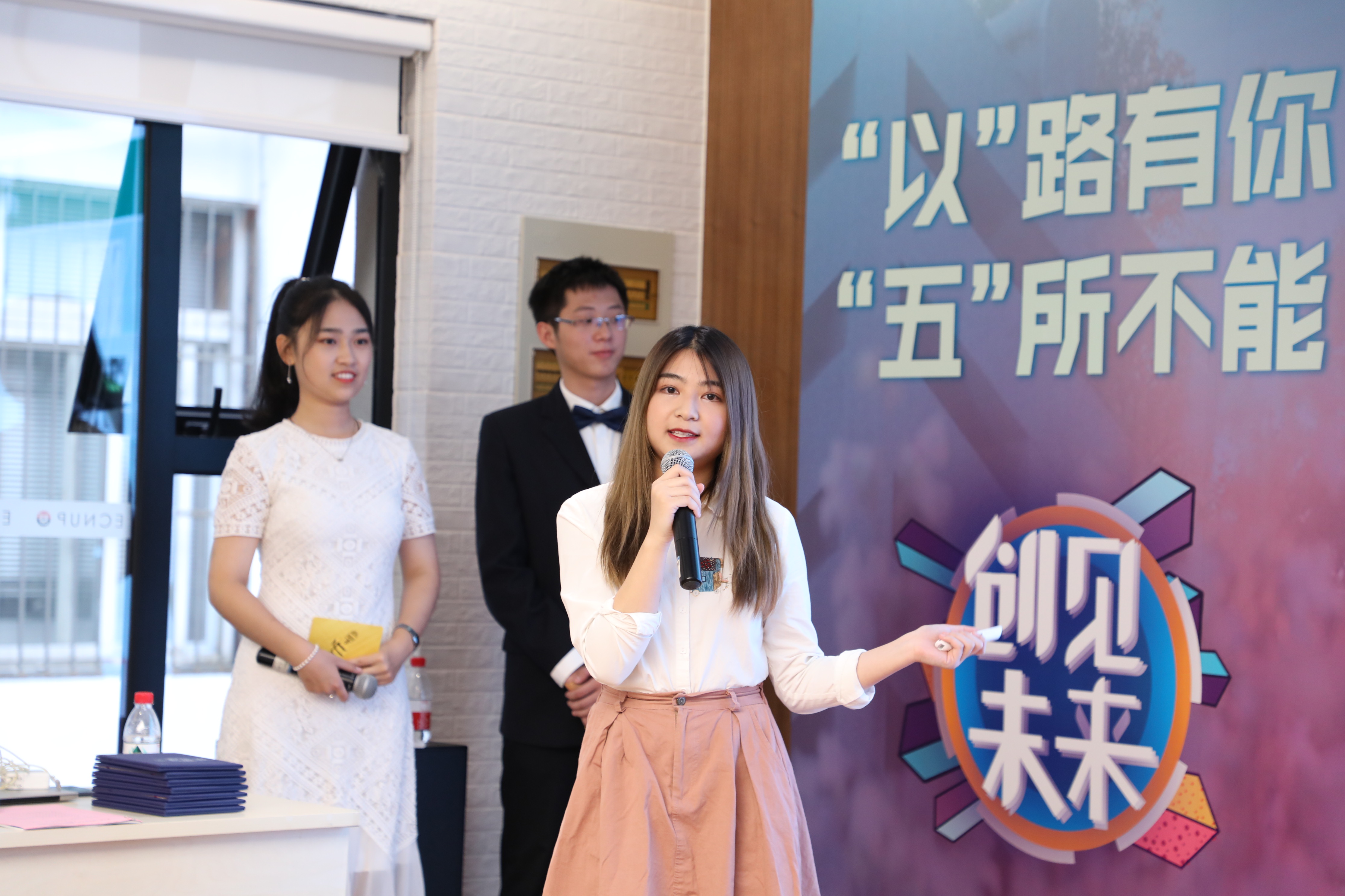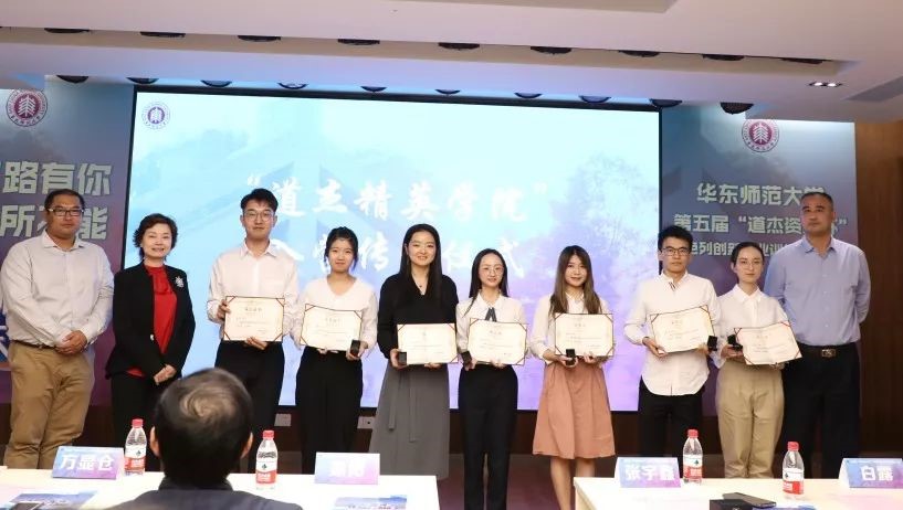 上海道杰投资有限公司董事长张宇鑫和经济与管理学部校友会秘书长白露为营员颁发精英学院证书和专属徽章