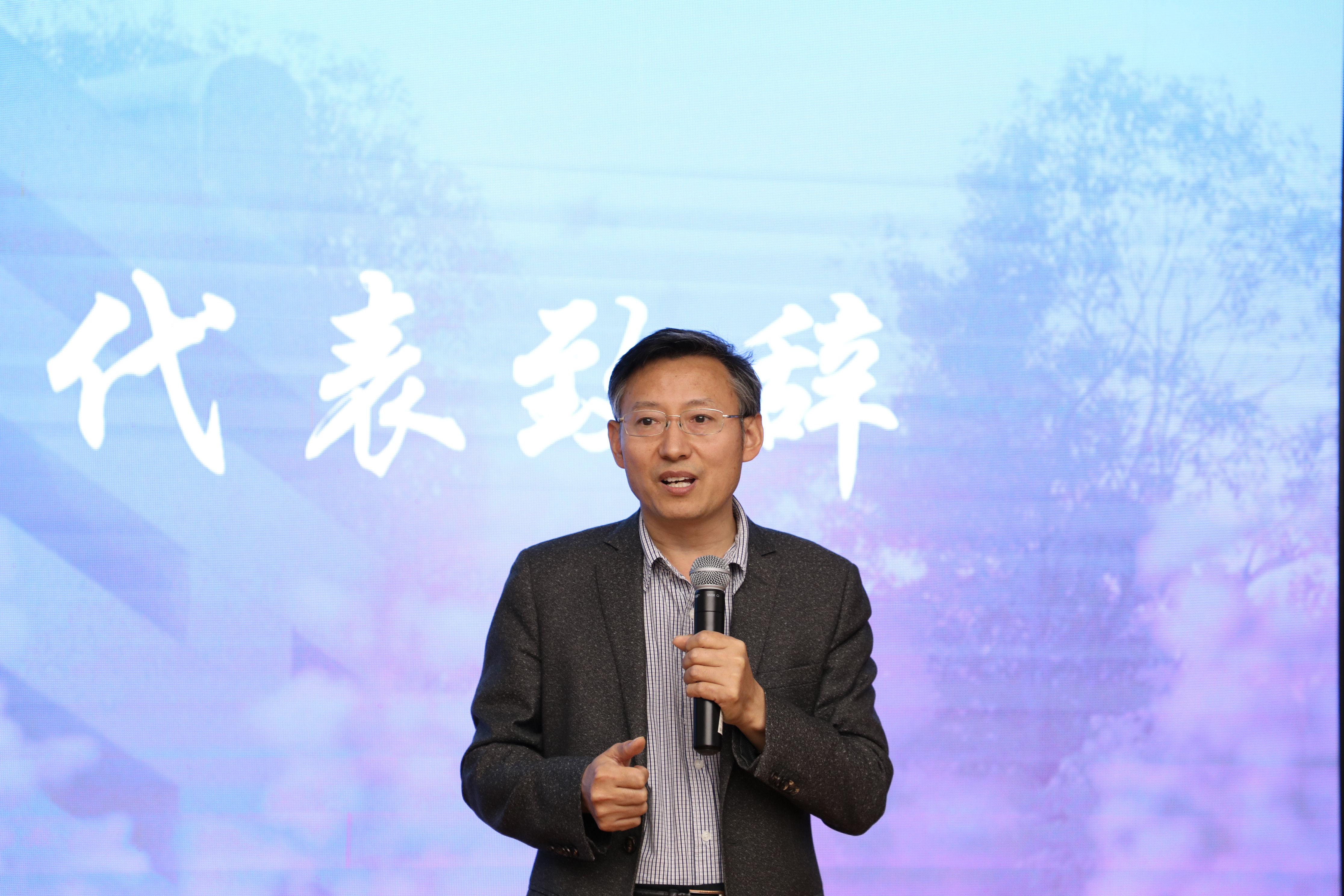 校长助理、基金会秘书长兼校庆筹备办公室主任斯阳讲话