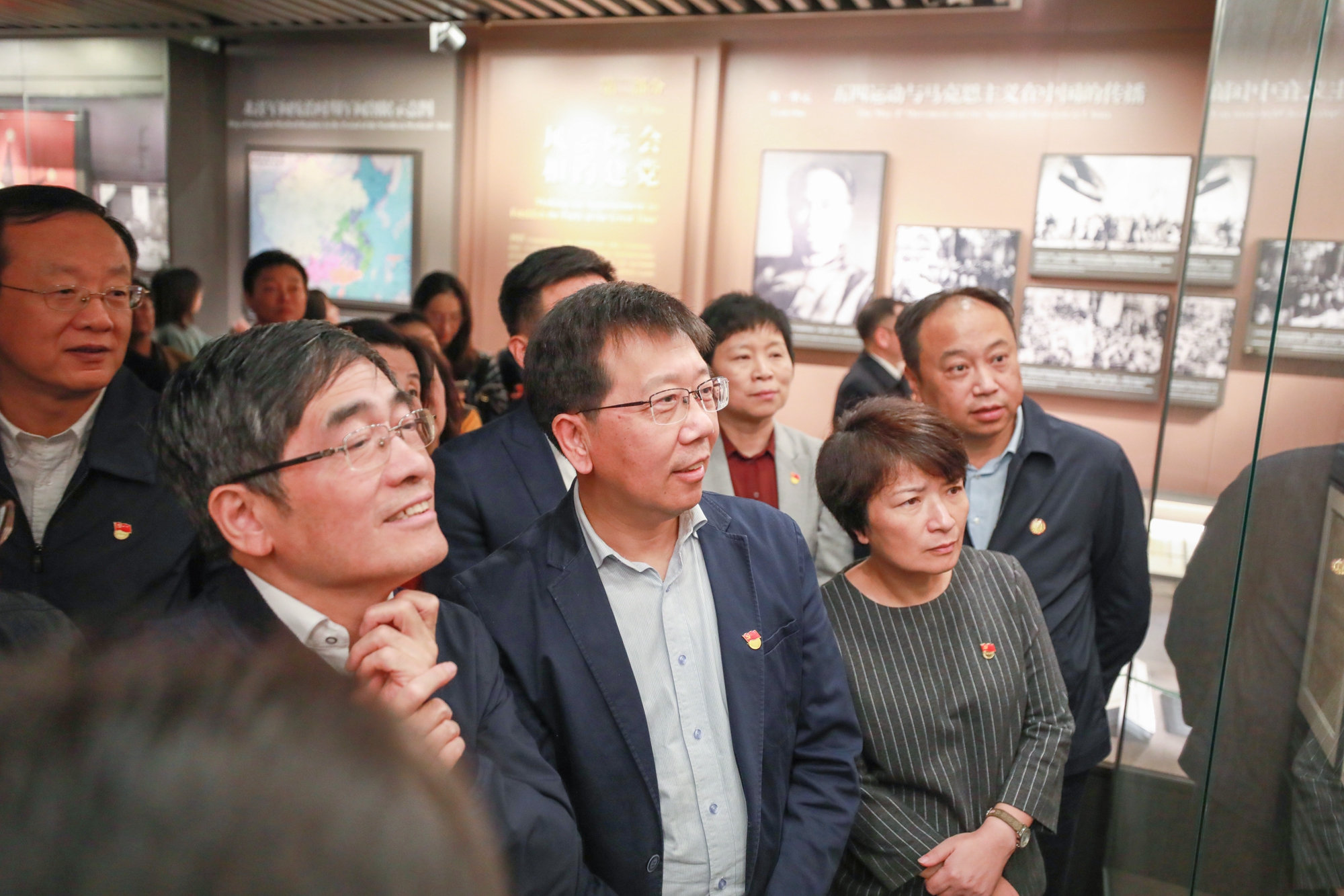 校领导班子首先瞻仰了“中国共产党人的精神家园”中共一大会议室原址和中共一大代表群像浮雕,随后参观了“伟大开端——中国共产党创建历史陈列”之“前赴后继、救亡图存”“风云际会、相约建党”“群英汇聚、开天辟地”等专题展区,驻足观看了浓缩我们党波澜壮阔奋斗历程的视频短片《追梦》等,用心体会一件件珍贵文物和图文影像资料背后所承载的鲜活历史,蕴含的深刻故事,以及传承的革命精神。