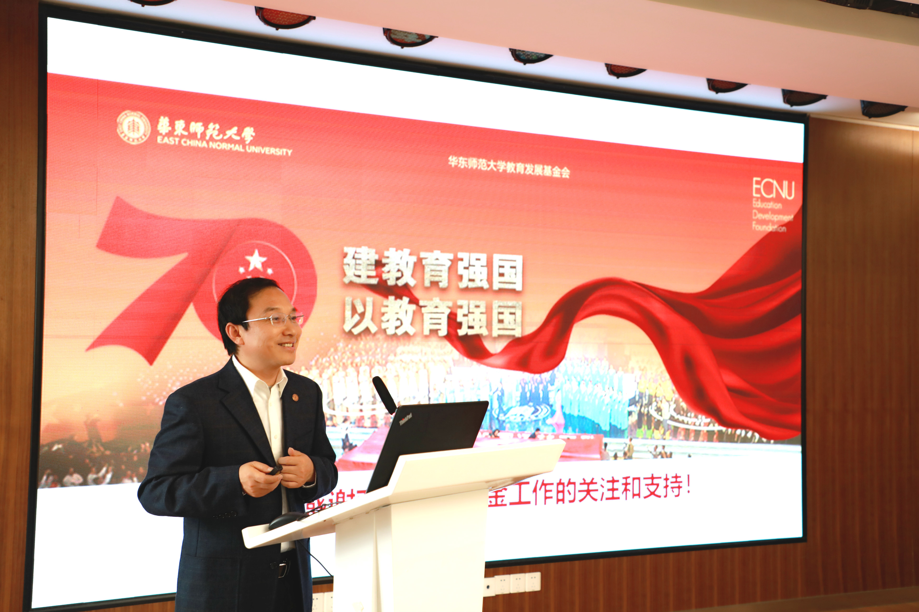 校长助理、校庆筹备办主任、教育发展基金会秘书长斯阳作校庆、基金工作进展情况报告