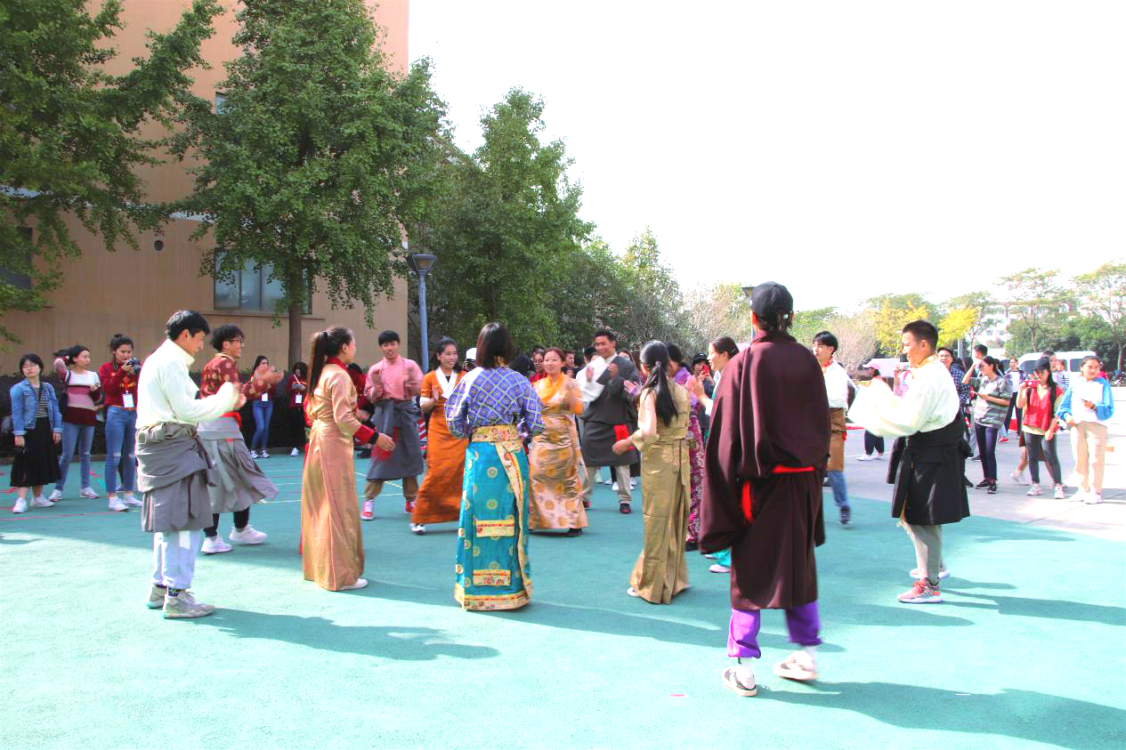 当天下午第二届少数民族学生特色运动会在闵行校区学生之家C区广场拉开帷幕。党委统战部部长王庆华致开幕词,学生工作党工委书记、学生工作部部长余佳宣布运动会开幕。作为我校民族团结进步教育工作的重要载体,本届少数民族学生特色运动会设竞技比赛、宣传展示、观摩体验三大部分,分别通过比赛、展示、体验等环节,全方位呈现我校各民族同学团结奋进、幸福和谐的精神风貌。来自各院系的14支参赛队伍、近120名运动员在高脚竞速、毽球、打陀螺和射箭四项比赛中奋勇争先,展开了一场场激烈的角逐。