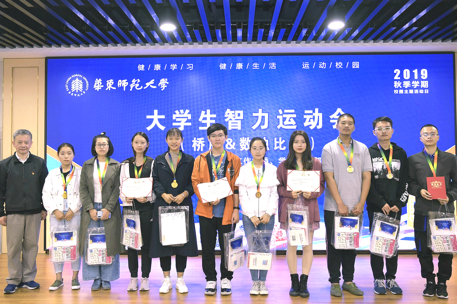 为了进一步锻炼同学们的逻辑思维能力、培养合作精神、丰富数学教育文化内涵,学校推出首届大学生智力运动会——桥牌、数独比赛。本届智力运动会也得到了四季教育集团的大力支持。今年,近200名学生参赛。数独决赛在2个赛场同时进行,场上同学们大脑高速运转、聚精会神盯着试题,争分夺秒。桥牌比赛采用固定搭配、现场随机搭配、校友彩蛋搭配的方式进行比赛,共有24人参赛,分为6组,团体博弈,搭建了结识新朋友、增进了解和友谊的桥梁。校党委副书记杨昌利、四季教育集团副总何乐华等分别为获奖者颁奖。杨昌利在致辞中表达了对同学们的殷切期盼,她期望借智力运动会之契机,使智力运动在华东师大校园生根发芽,茁壮成长,希望未来在全国乃至世界的智力类赛事上,看到华东师大学子的身影。