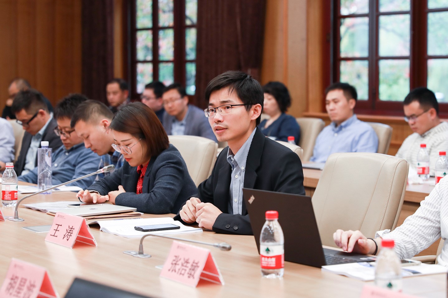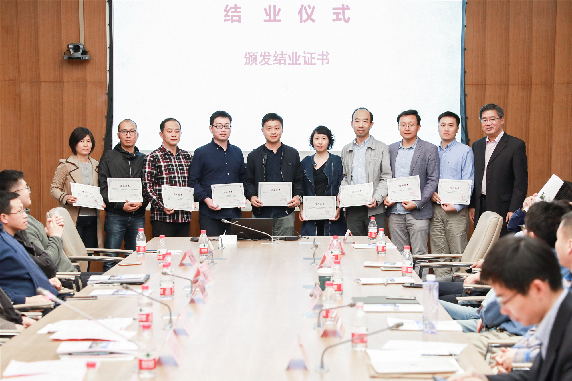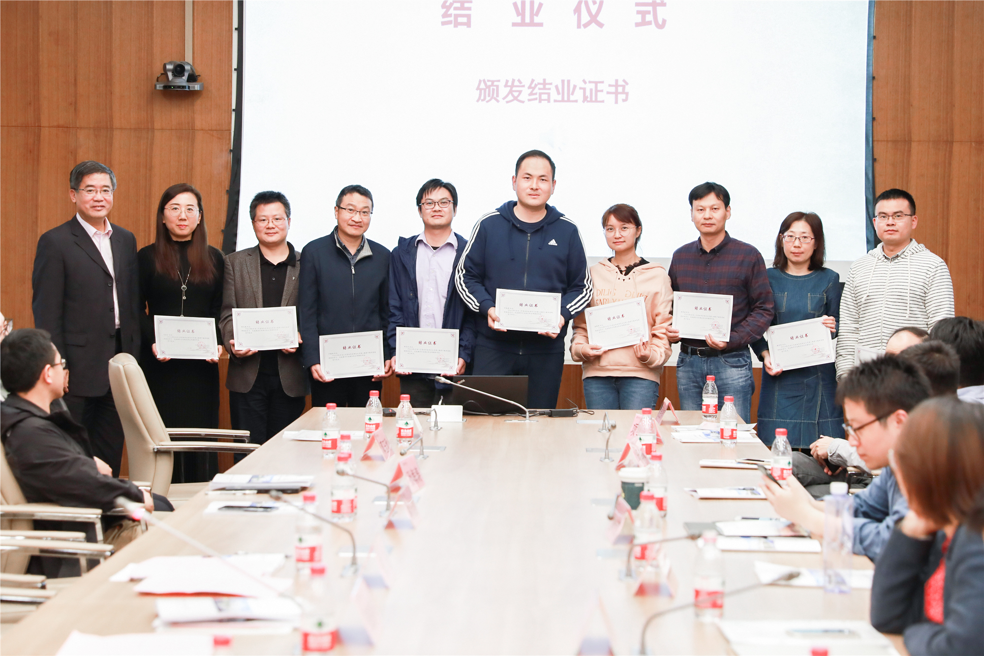 在结业仪式环节,与会人员观看了结业回顾视频。化学与分子工程学院徐浩、教育学部王涛分别代表第十一期骨干教师高级研修班、2019年海外归国留学人员高级研修班学员发言。随后朱民为学员逐一颁发结业证书。