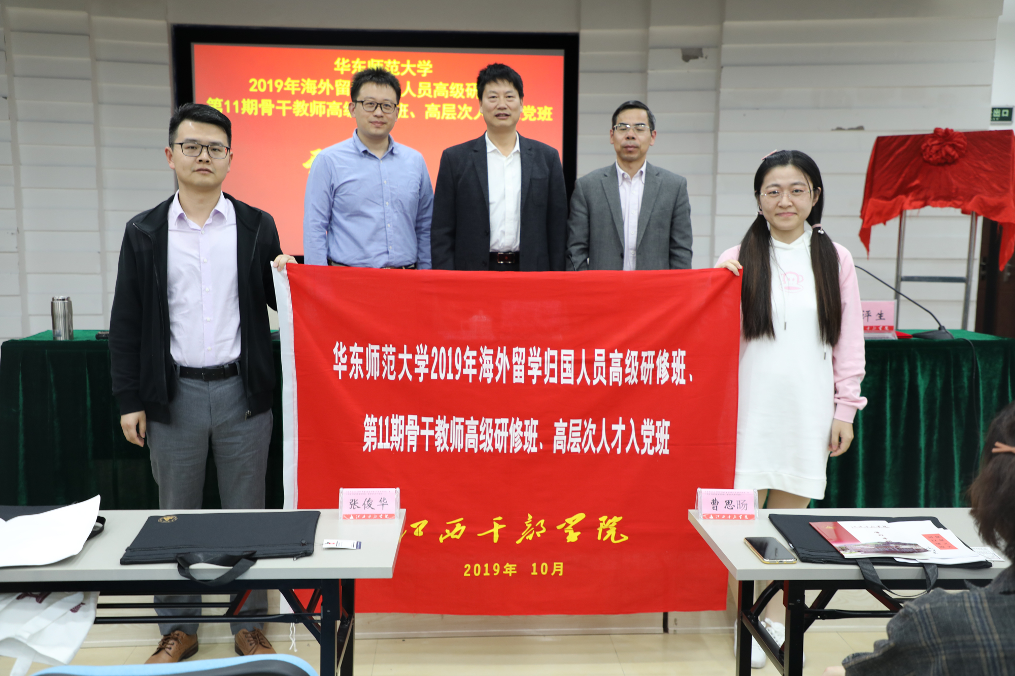 为深入学习贯彻习近平新时代中国特色社会主义思想,切实落实《2018-2022年全国干部教育规划》,扎实开展“不忘初心、牢记使命”主题教育,同时进一步拓宽培训平台,推动培训资源共建共享,提升我校党校教育培训水平,10月16-20日,我校在江西干部学院举行了党校教育培训基地签约仪式,并组织第11期骨干教师高级研修班、2019年海外留学归国人员高级研修班、高层次人才入党班学员开展了为期5天的现场教学,党校(高级研修学院)及党委教师工作部相关人员参与了本次教学活动。江西干部学院院长郭评生、华东师大党校副校长兼高级研修学院副院长张俊华出席开班式。
