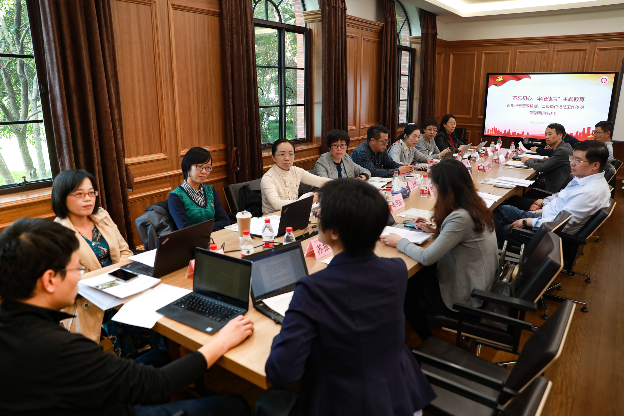 18日下午,研讨班结合“不忘初心、牢记使命”主题教育工作调研,曹友谊、纪委办监察处巡察办同志,分三组向纪委委员、专兼职纪检员,围绕巡视巡察整改机制、纪委机关工作机制和二级单位纪检工作体制,进行座谈交流,听取意见和建议。