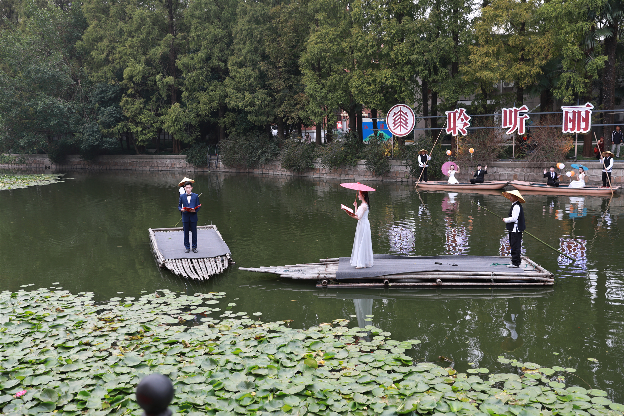 有河的地方,爱情总是更多浪漫肆意。丽娃河为华东师大添了更多诗情画意。《又见丽娃》由夏雨诗社创作,传播学院播音主持艺术专业研究生合诵。