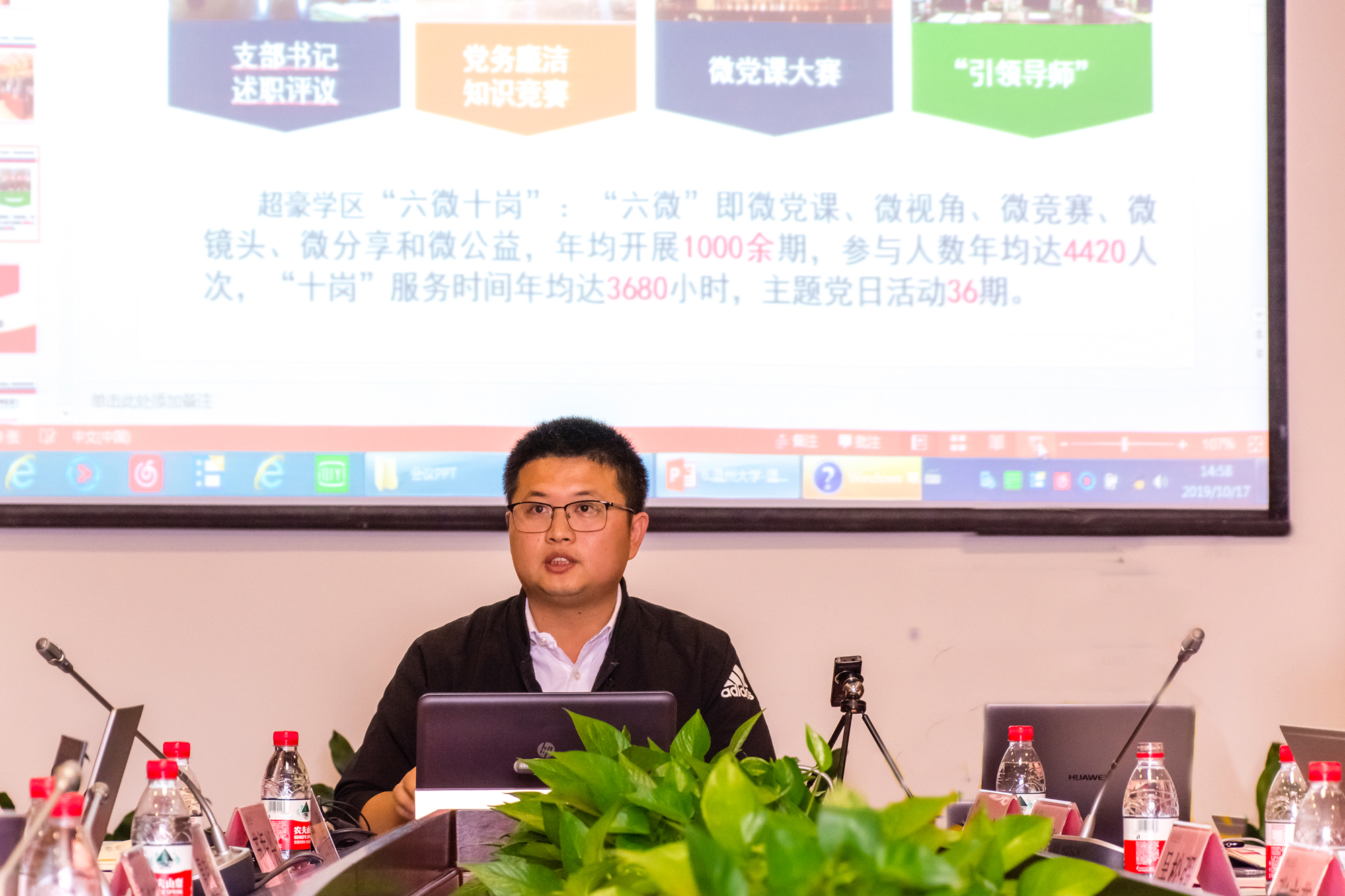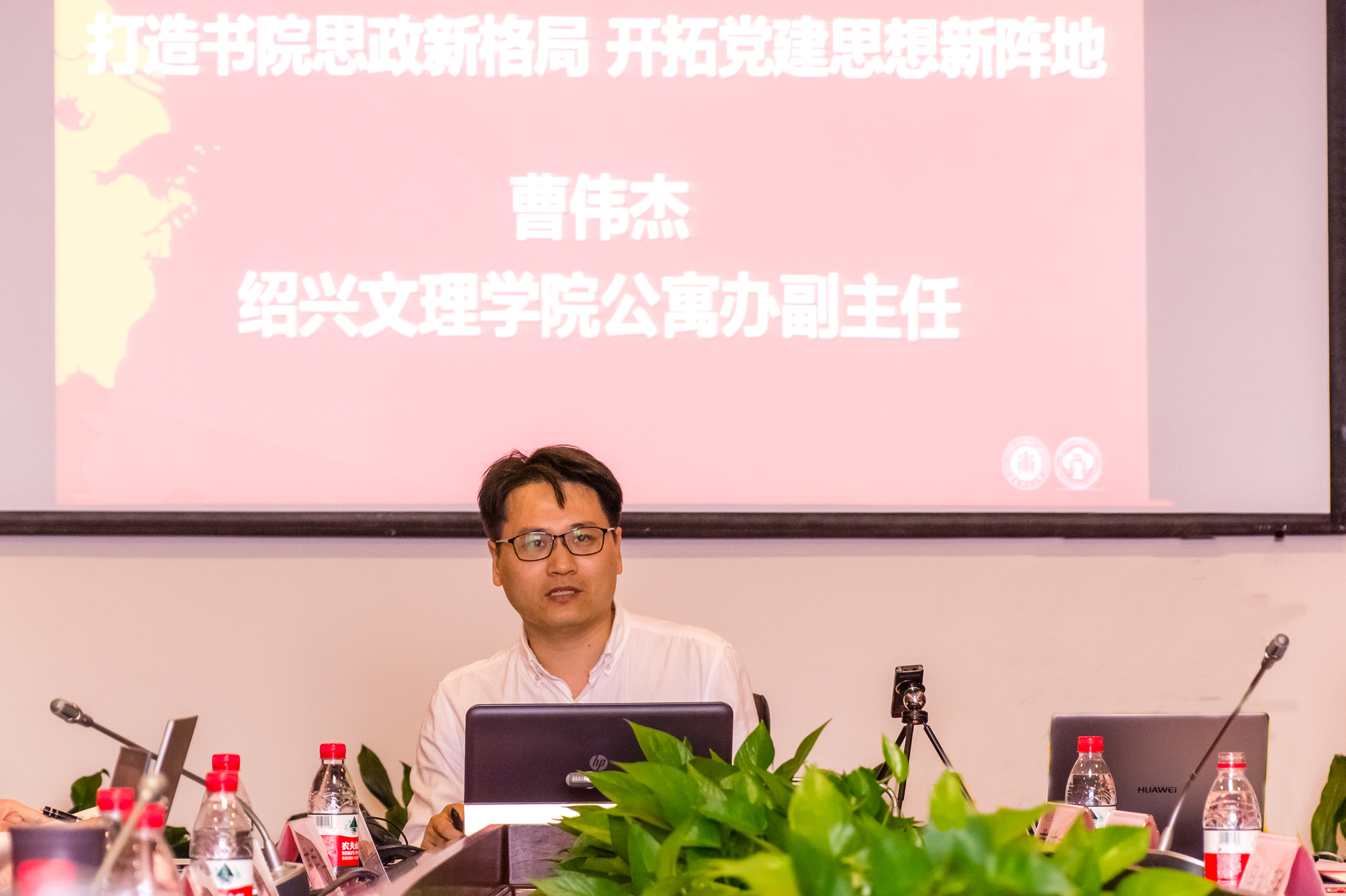 绍兴文理学院公寓办公室副主任曹伟杰以“打造书院思政新格局,开拓党建思想新阵地”为题,主要介绍了党员之家、公寓管理系统等特色工作。
