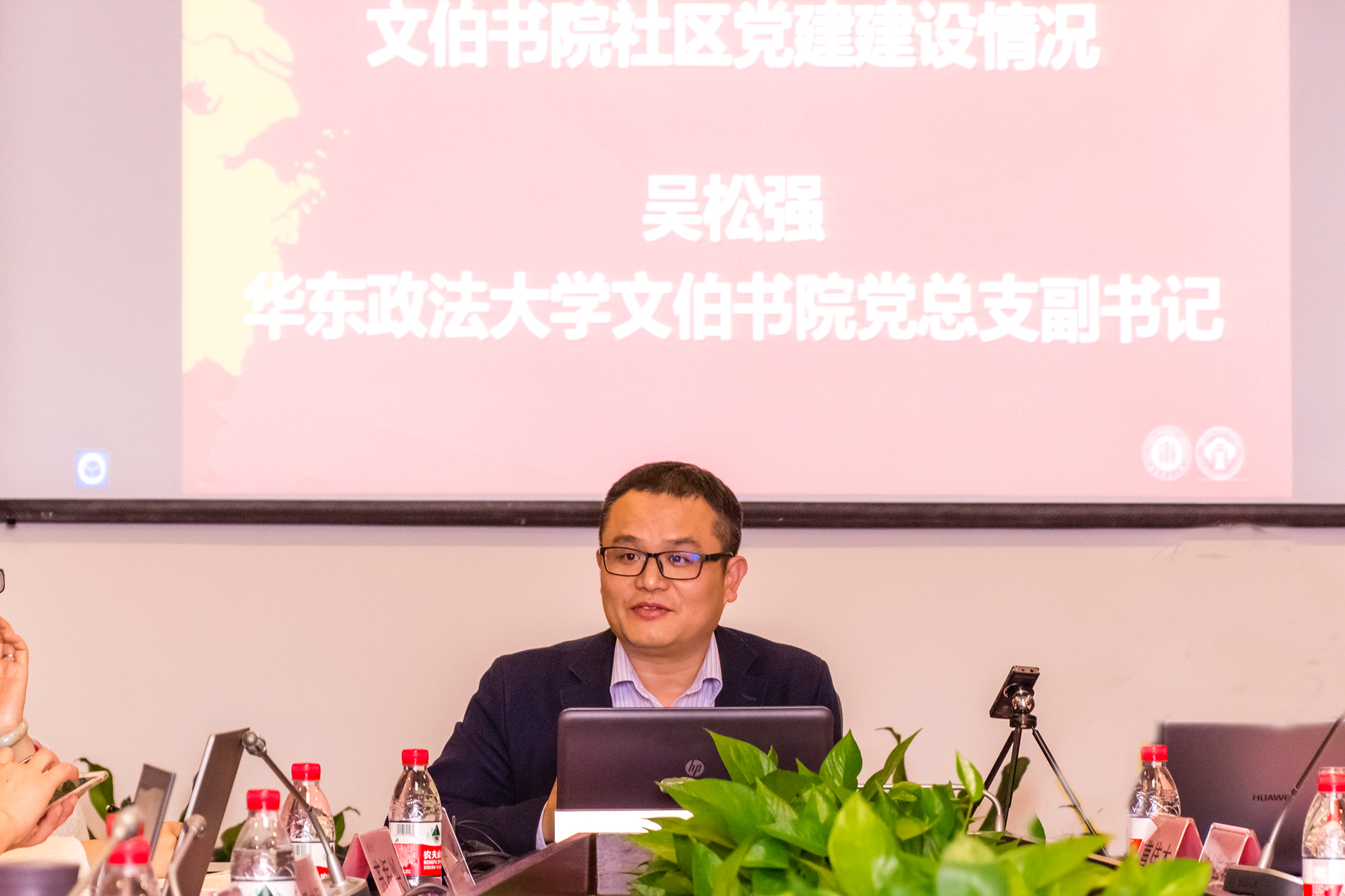 华东政法大学文伯书院党总支副书记吴松强介绍了文伯书院社区党建工作情况,即通过关口前移、空间延伸、主体拓展以及主题嵌入等四项举措开展学生入党启蒙教育。