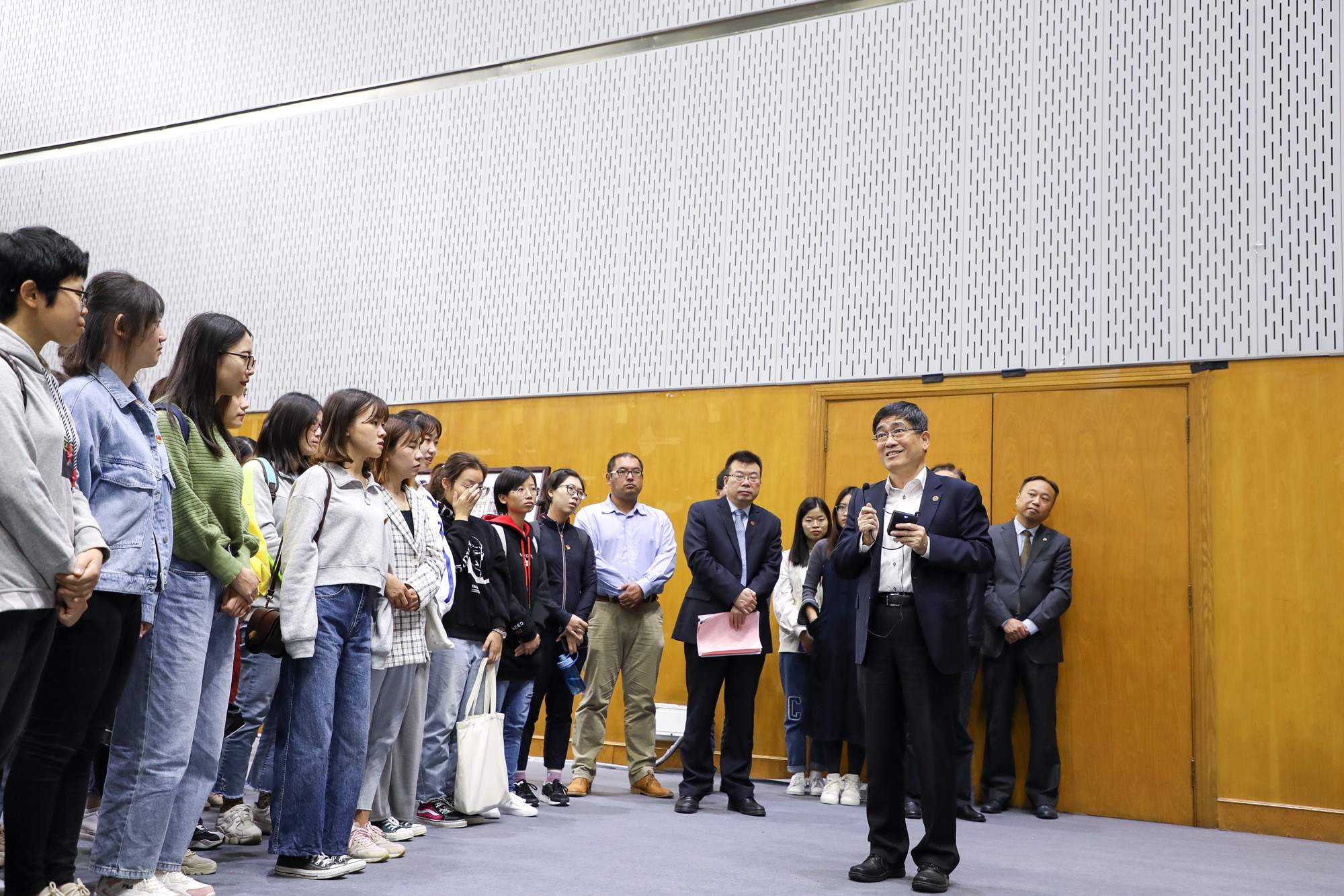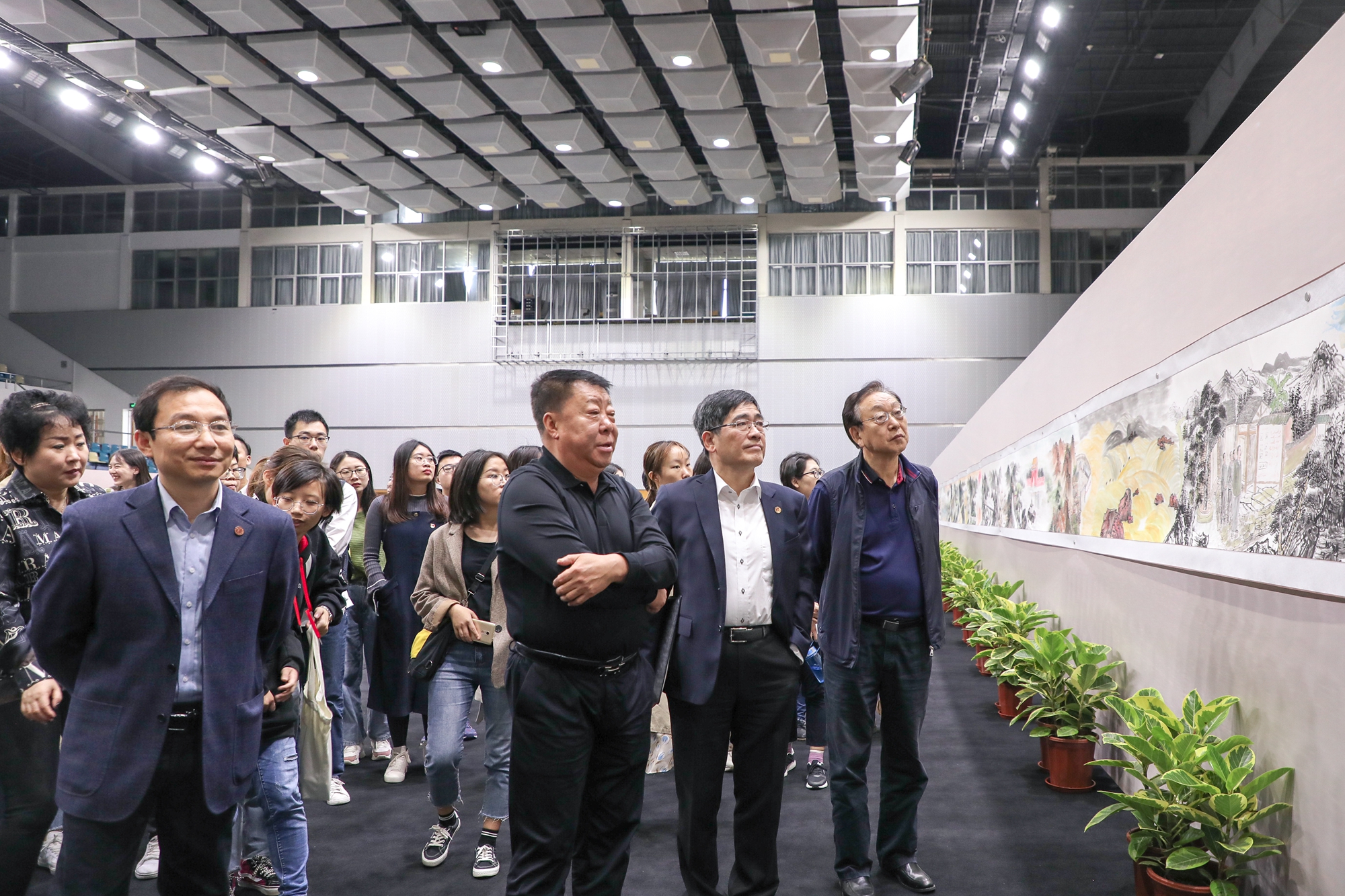 活动结束后,师生一同前往体育馆参观画展。教育学部、马克思主义学院、美术学系以及经管学部精英学院等院系组织了集体观展活动。童世骏在画展现场结合杜威教育思想对中国教育、对华东师大教育建设与发展的意义为观展师生上了一堂生动的“爱国荣校”主题教育课。